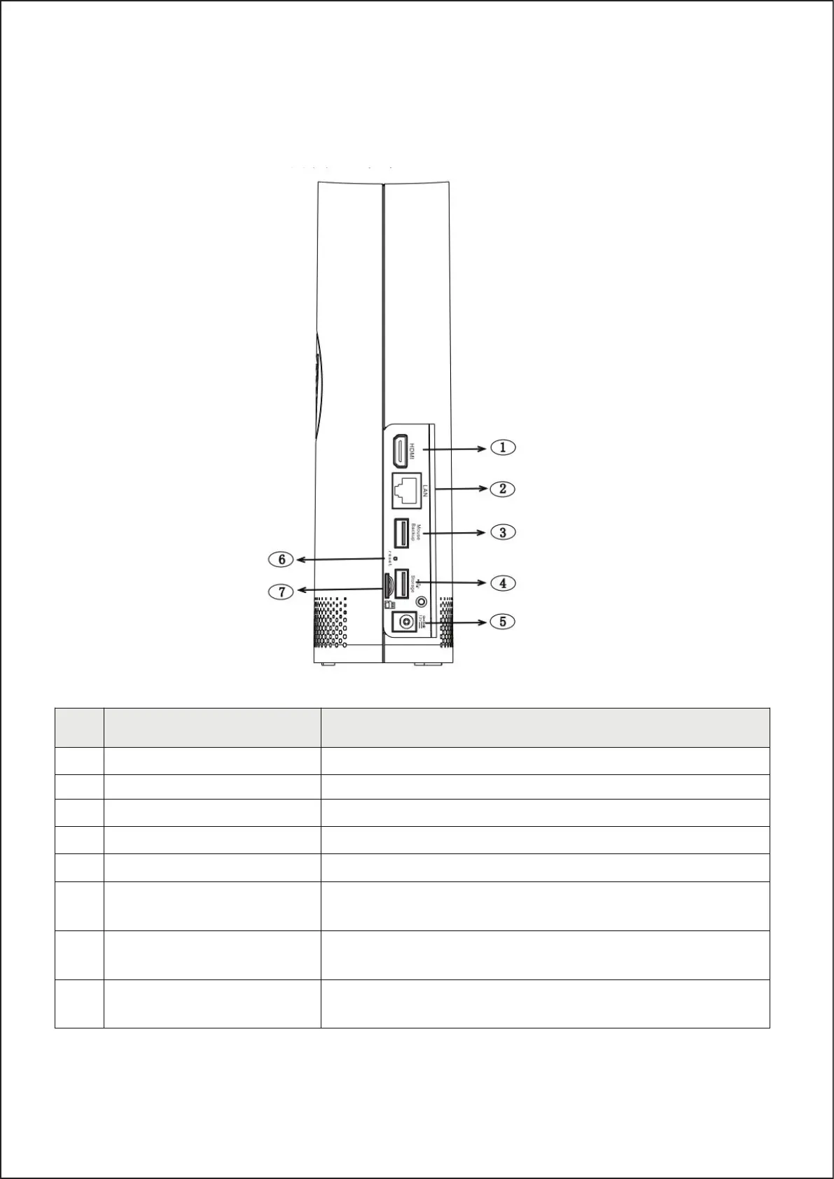 5 Power port Connect with the power supply DC12V 2A.