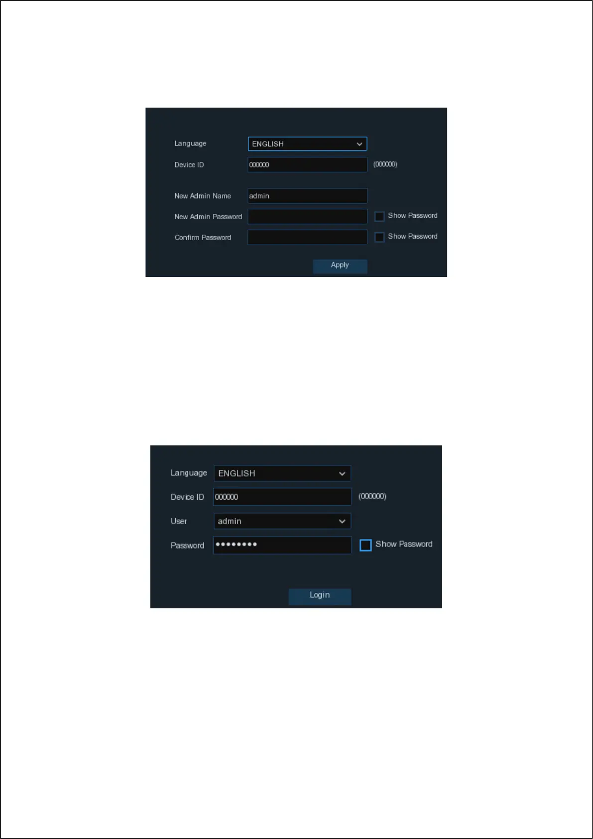 Click Apply to confirm your settings you will then be taken to the login interface. Enter your user name & password