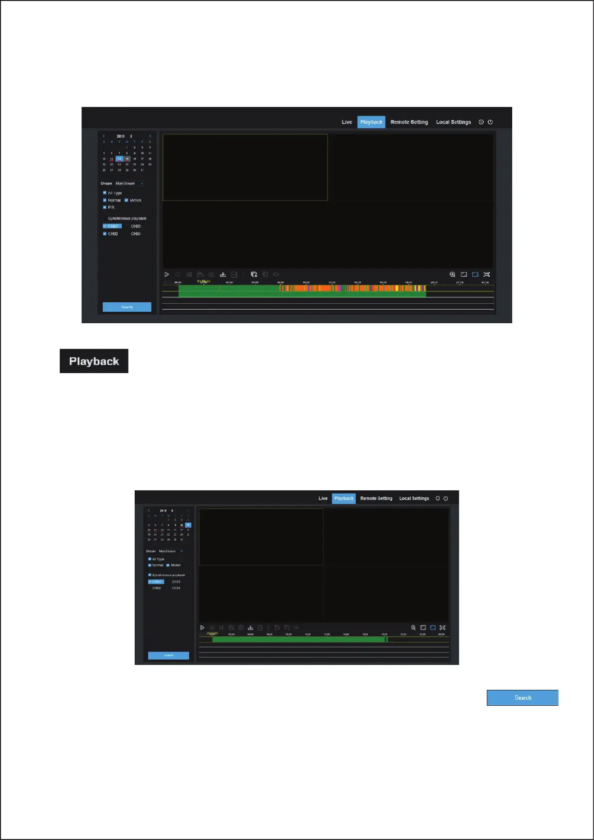 Firstly, select the date you want to check and tick 1 to 4 channels. Any record files in current channel at current date
