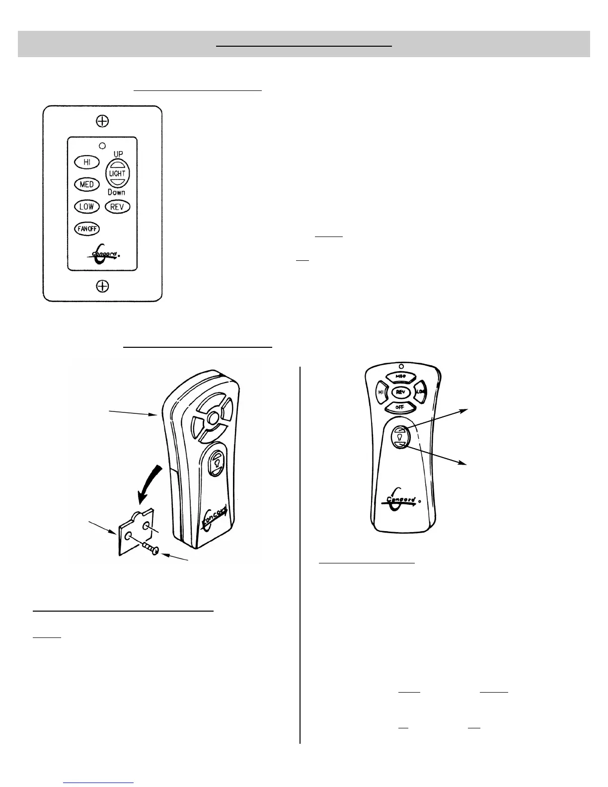 fan lights. Press and hold for dimming feature.