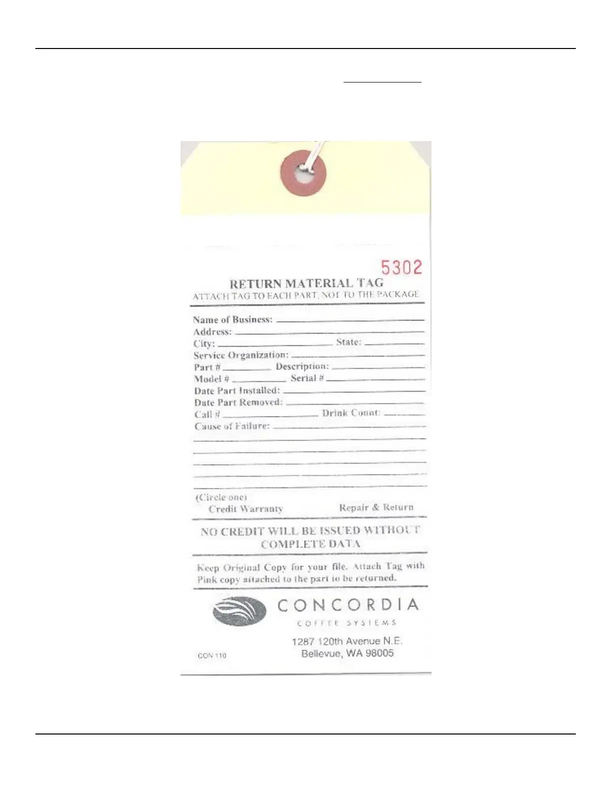 Each part must have a Return Material Tag filled out properly. If the tag