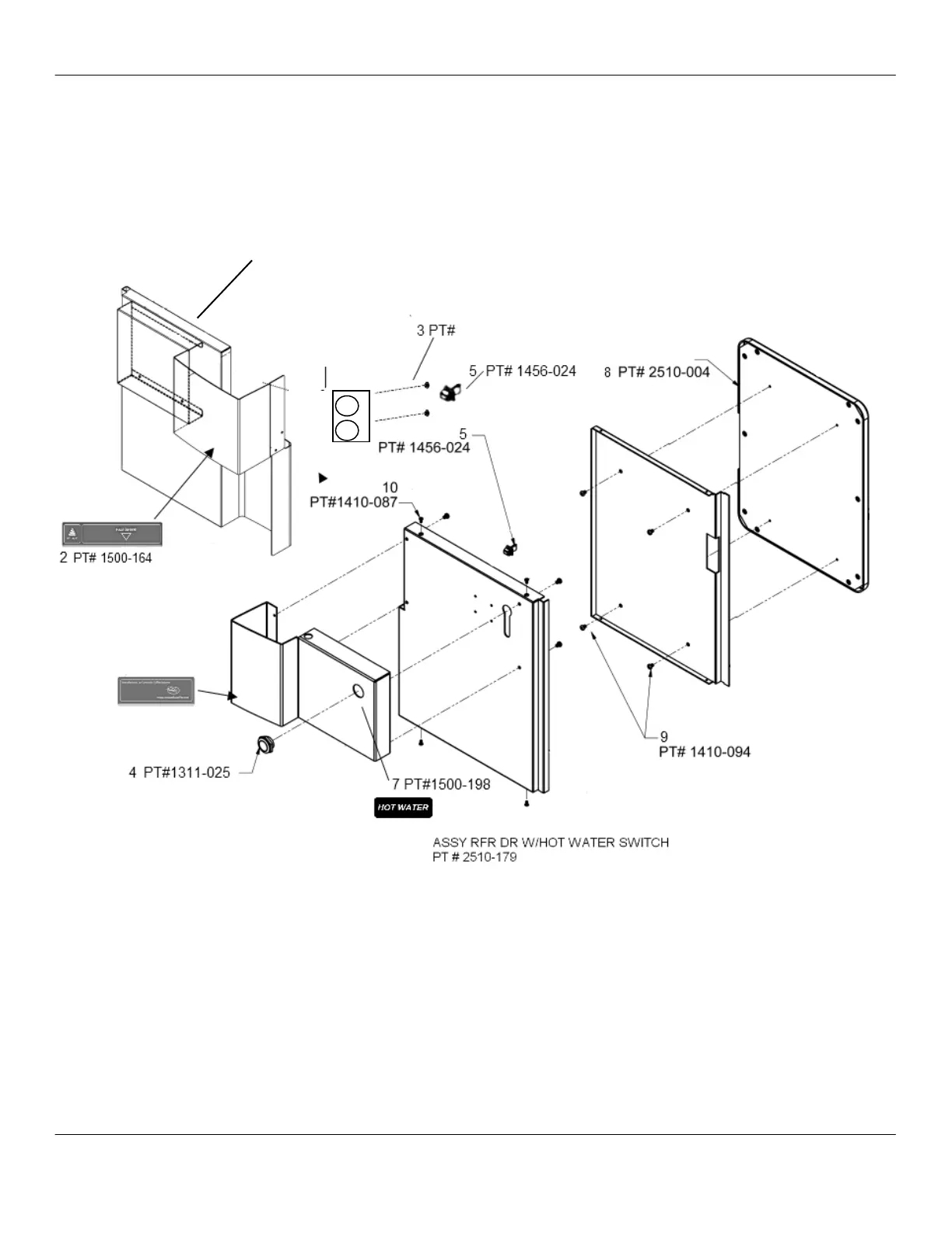 Concordia XPRESS - Diagram 2: Grounds Bin Door, Refrigerator Door with Hot Water Button Assembly