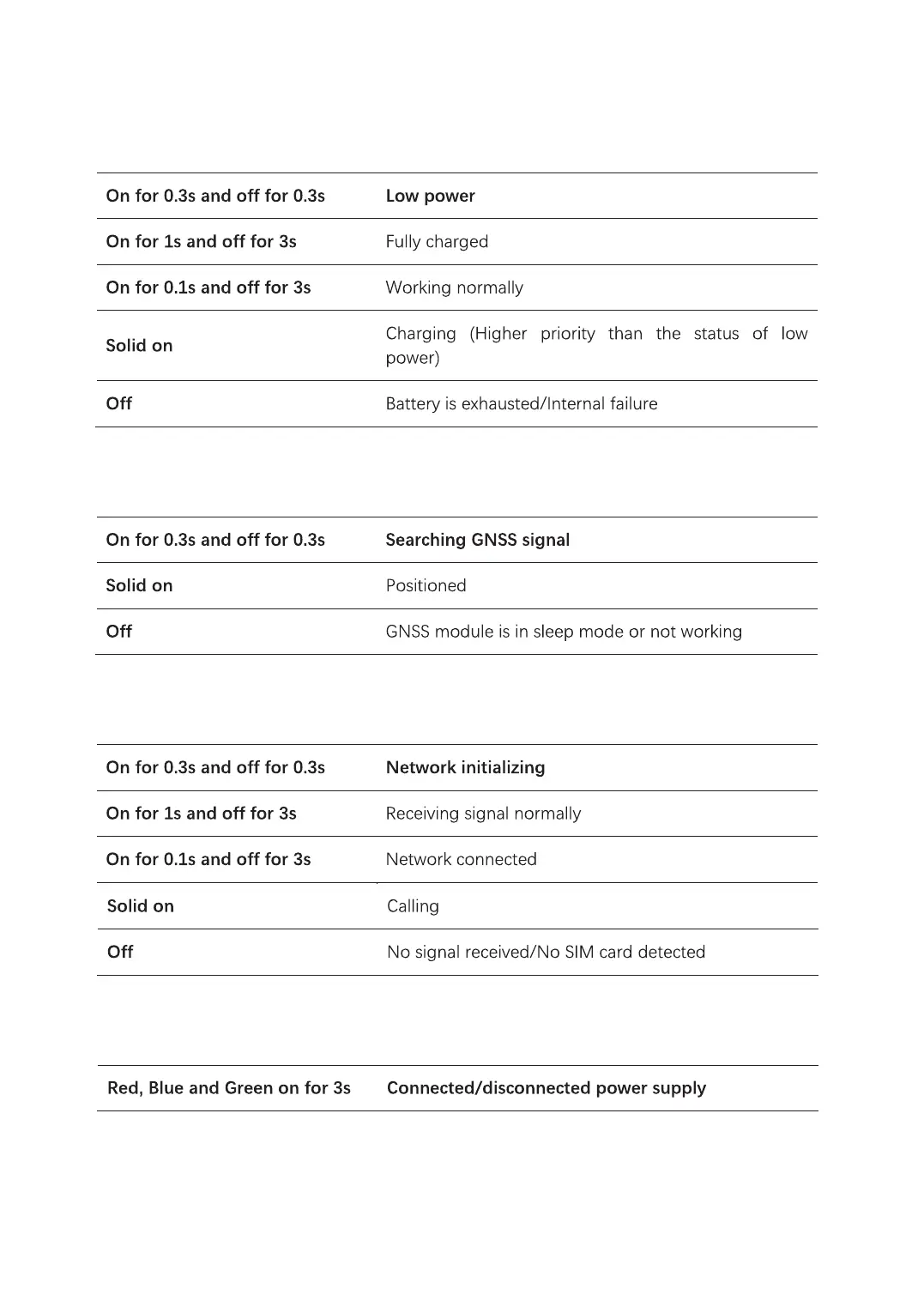 Concox VL101G - LED Indication