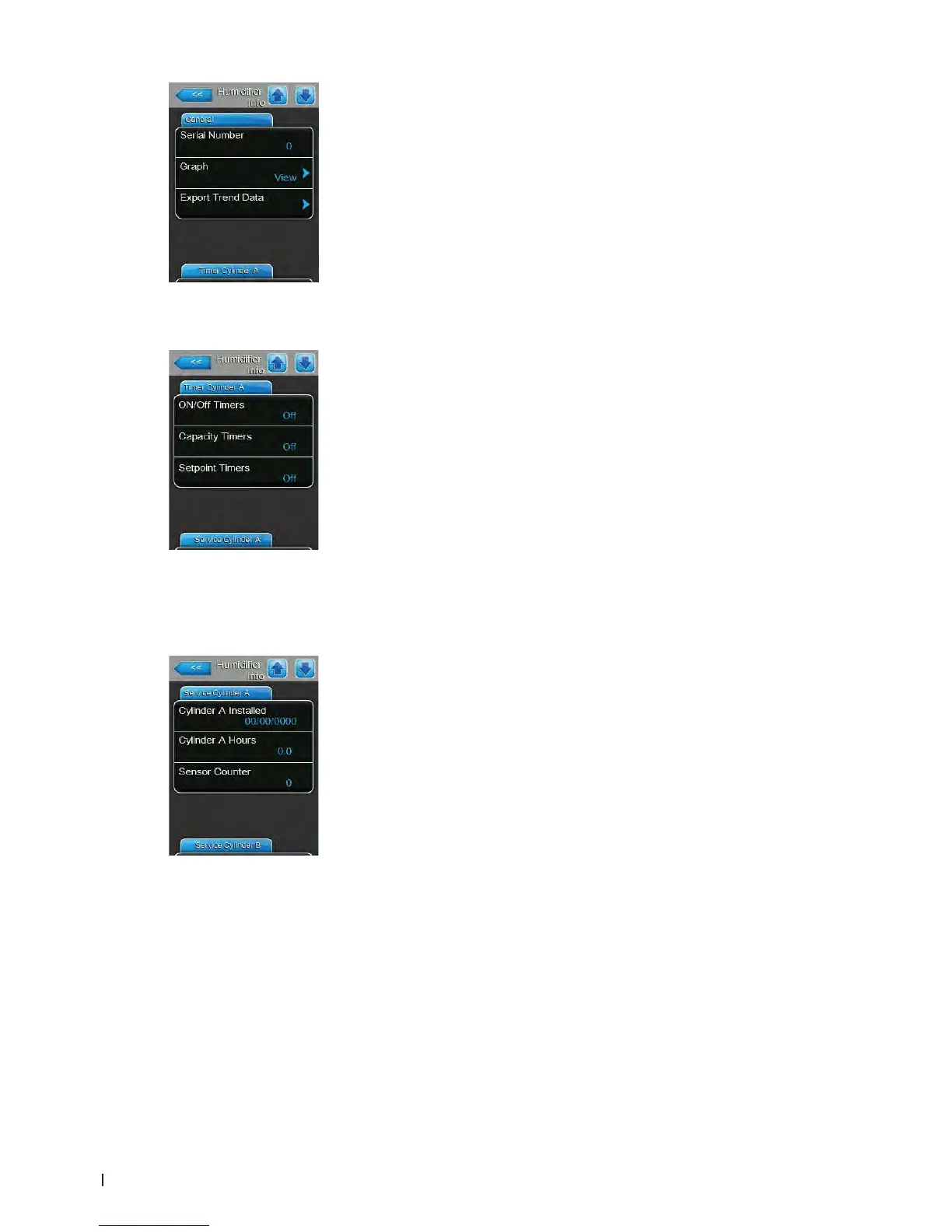 Note: the tab "Service Cylinder B" appears only on double units and large units with two steam cylinders.