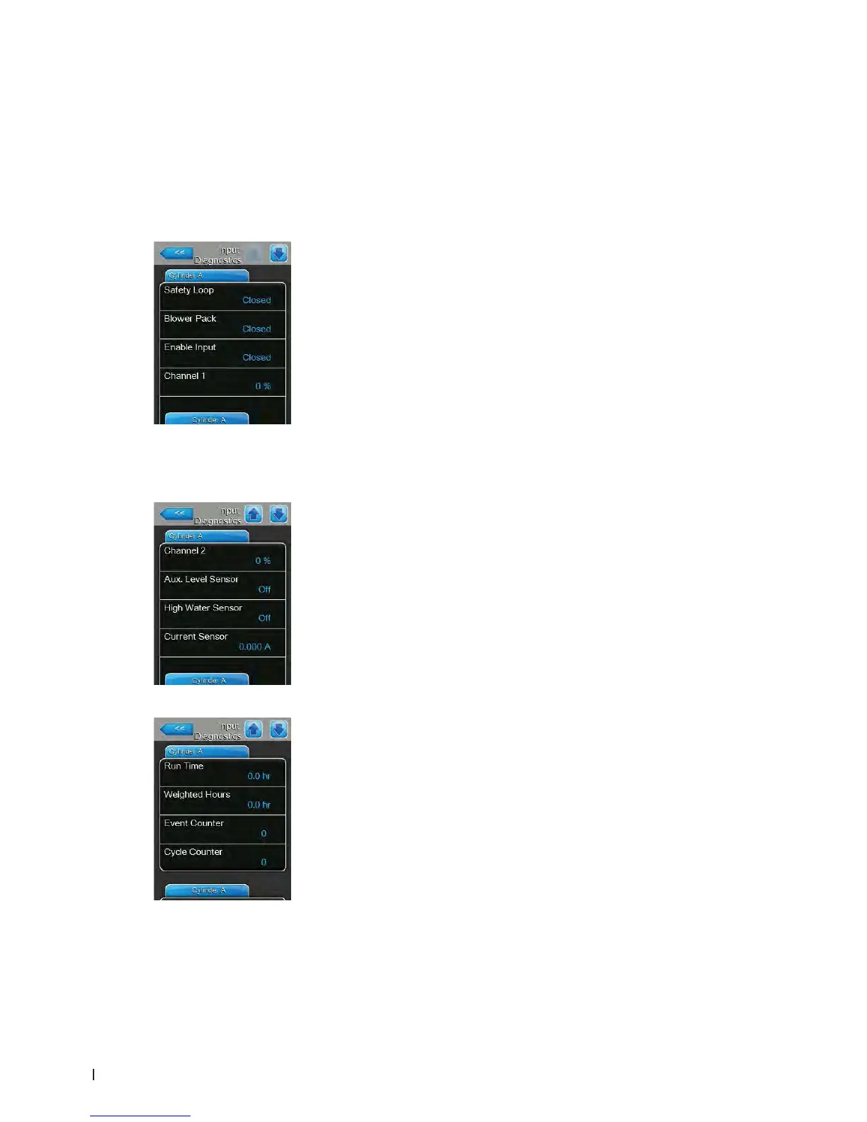 Note: the tabs of the input diagnostics for Cylinder B appear only on double units or large units with two