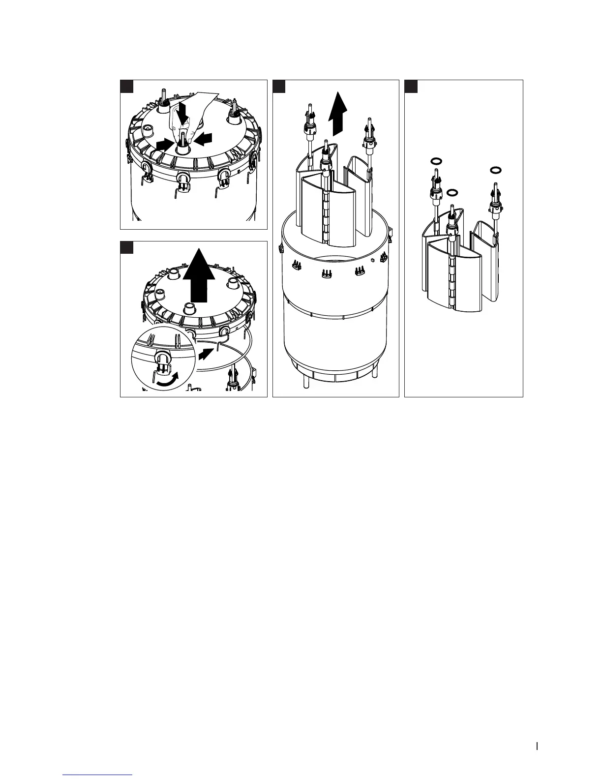 1. Pinch electrode snap fastenings and push electrodes approx. 2 cm downwards into the steam cyl-