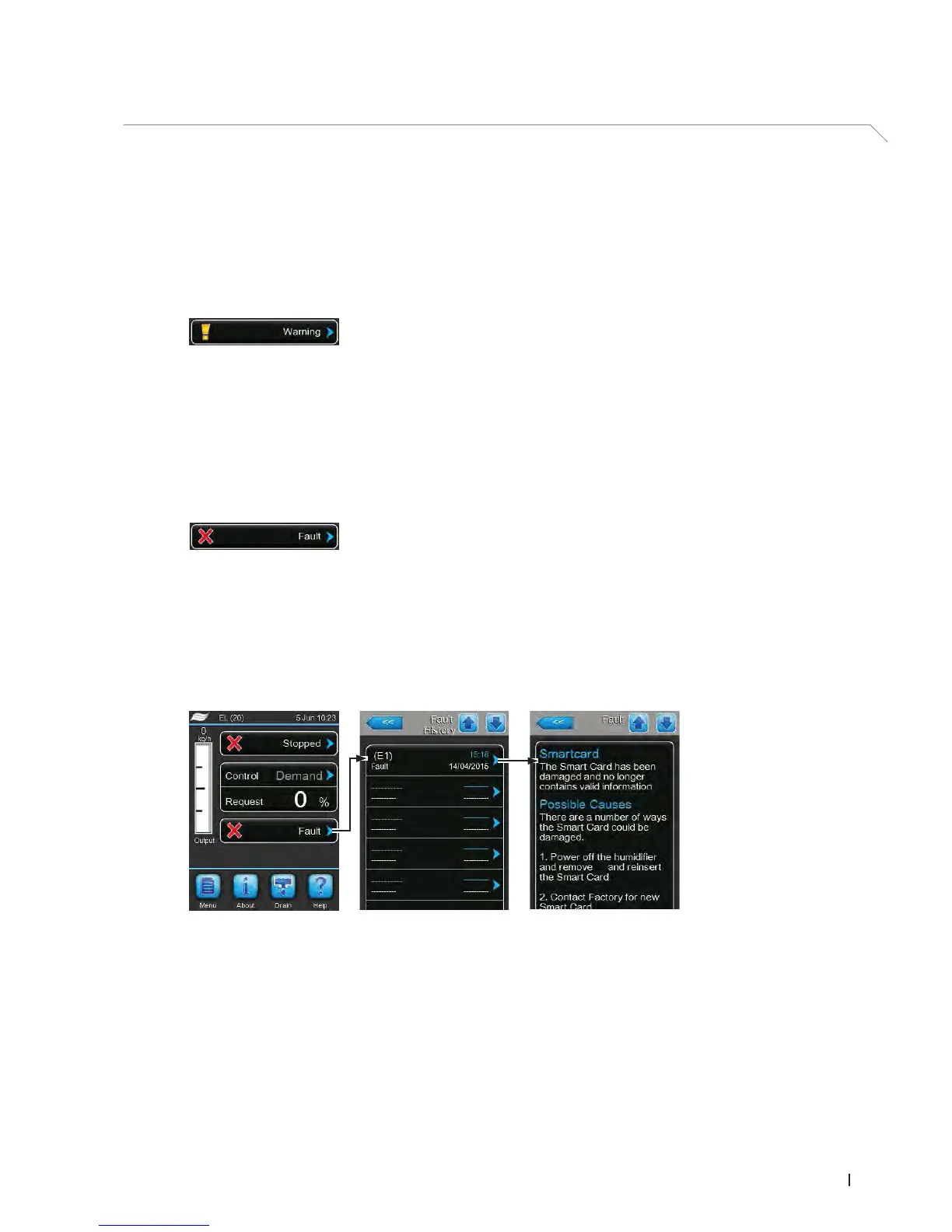 ditionally the red fault indicator LED below the touch panel will lights up. If
