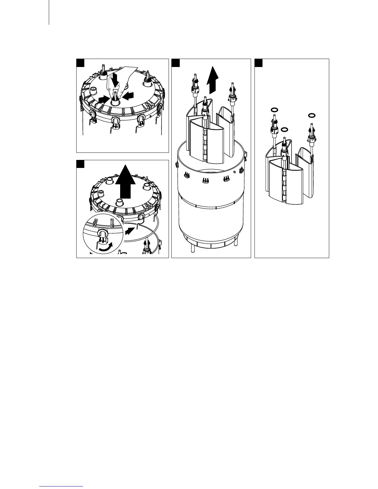 – Insertelectrodesintosteamcylindercoverandpushthemupwardsuntilthesnapfastenersengage.