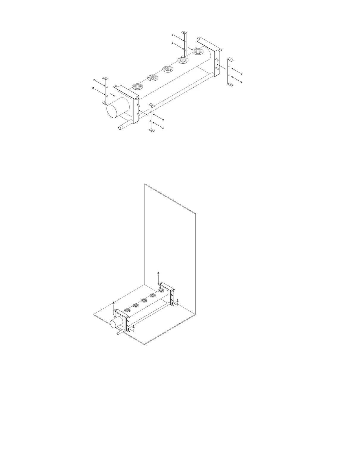 Place header on duct floor and drill 4 x 1/2” (12.7 mm) holes through floor.
