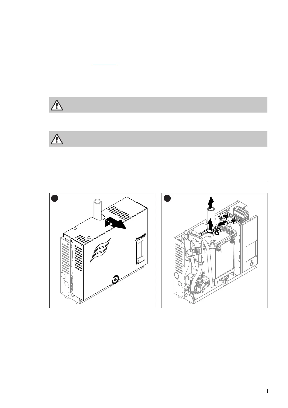 Before starting any removal work set the Condair RM out of operation and drain the steam tank. Please