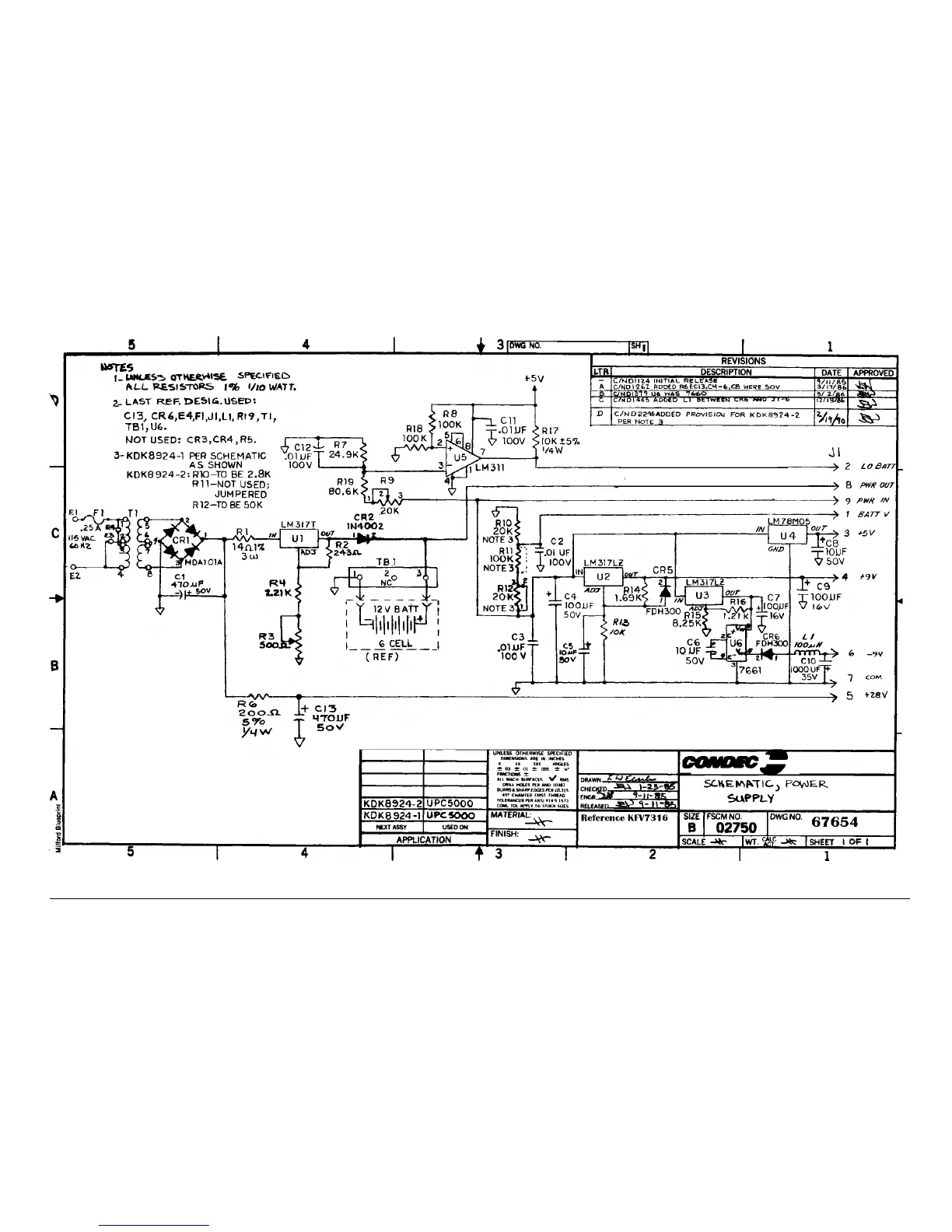 Figure 4-11. POWER SUPPLY SCHEMATIC, (For Battery Units Only)