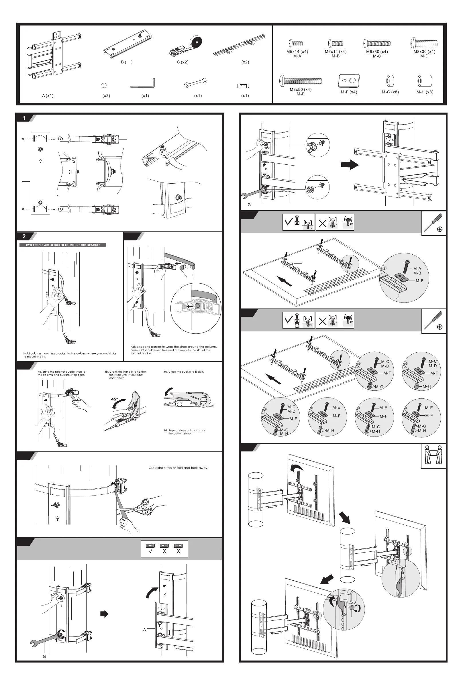 CondoMounts CLMTVA1144 - Component Identification and Installation Steps; Parts List and Hardware; Step 1: Feed Ratchet Straps; Step 2 & 3: Prepare Column Bracket