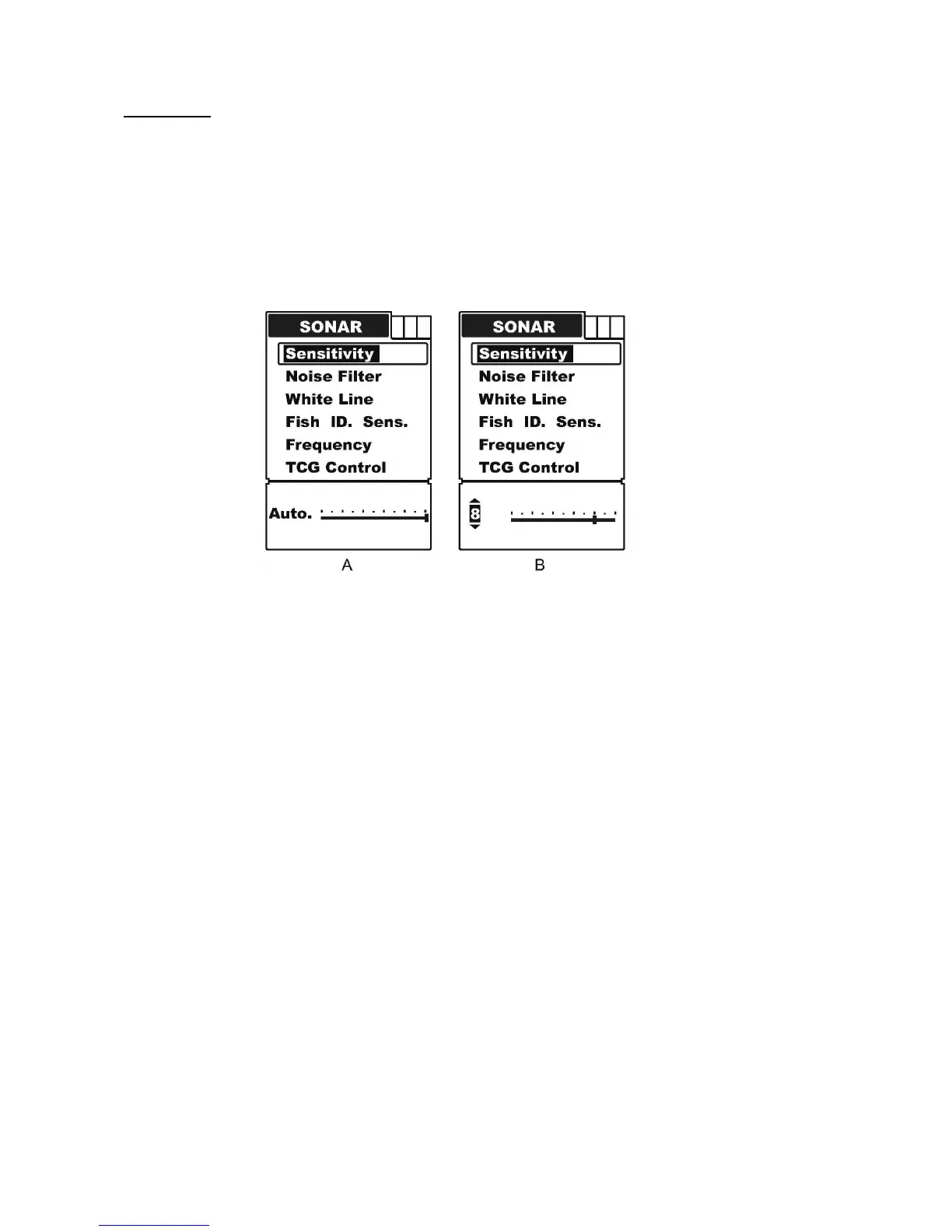 The larger the sensitivity is, the more relatively strong sonar returns the screen will display.
