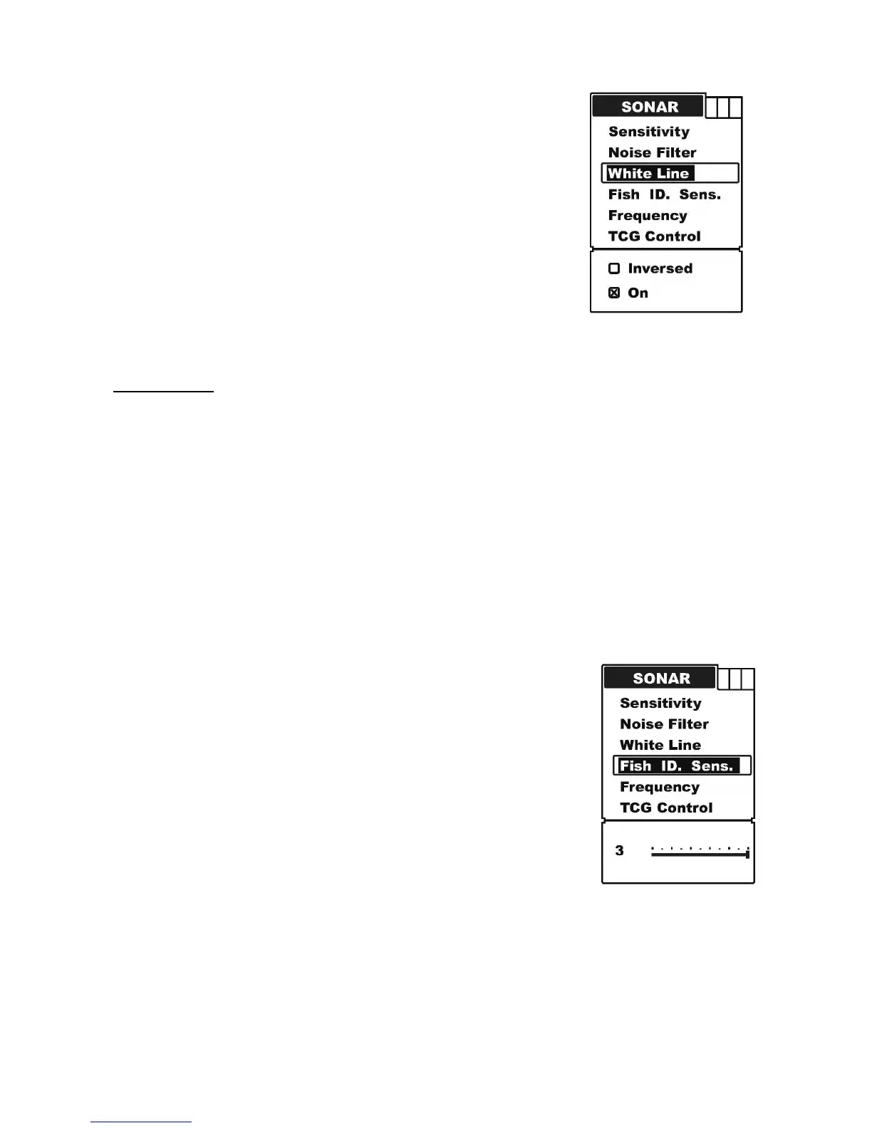 b) Repeatedly press MENU to switch to Sonar menu.