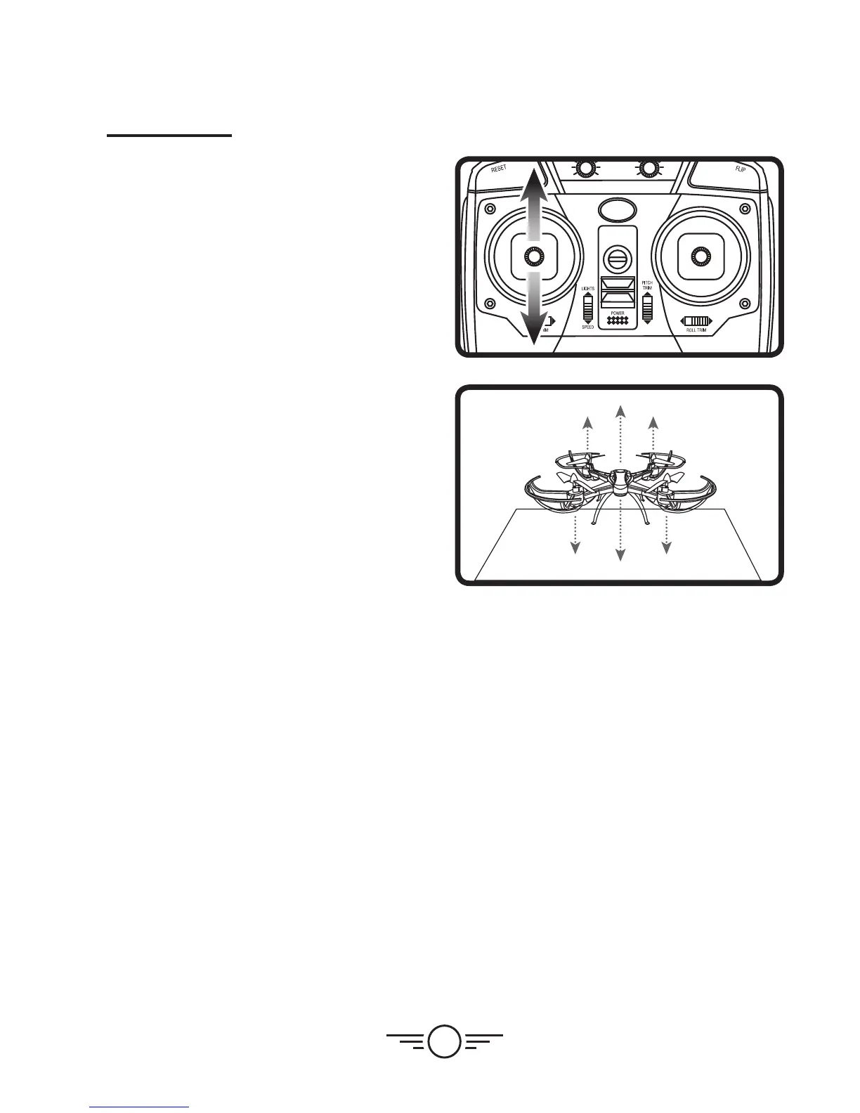 To land and power OFF, pull down and hold the Left Control Stick until the rotors have
