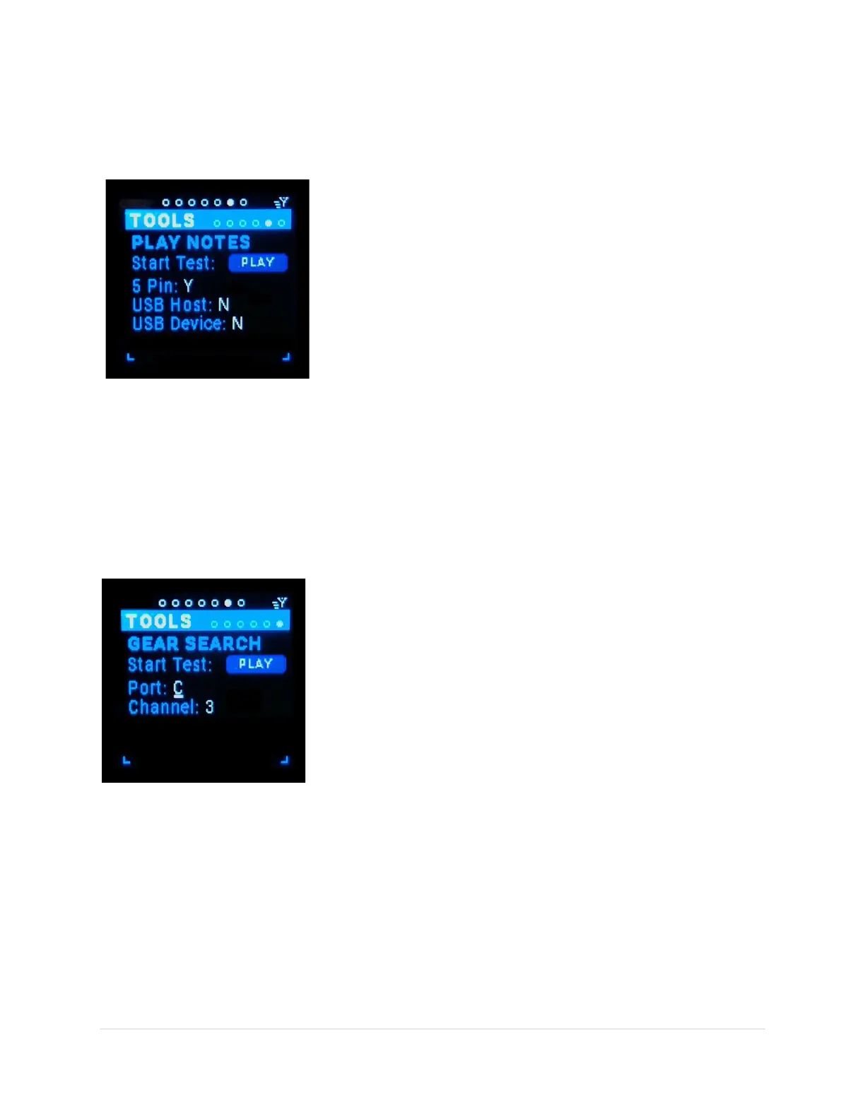 This tool plays notes on one or more of three port ranges 5-Pin, USB Host & USB Device on all channels.