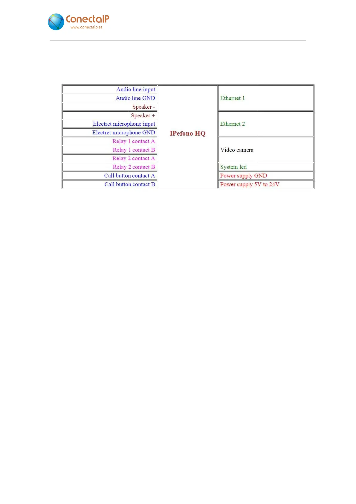 ConectaIP IPefono WM - Viewing the Pin Assignment