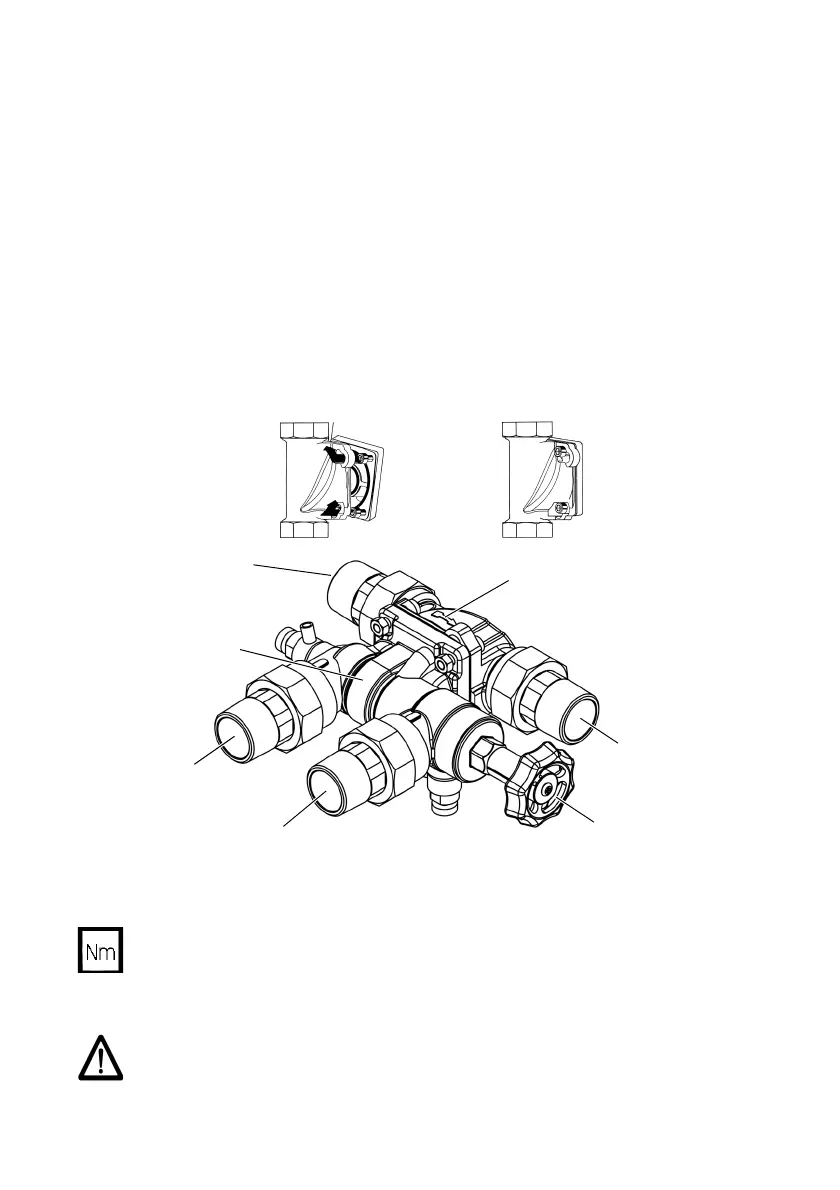 / Reduzierverschraubungen (1¼" auf 1") auf die beiden Stutzen des Umgehungsventils JQU schrauben.