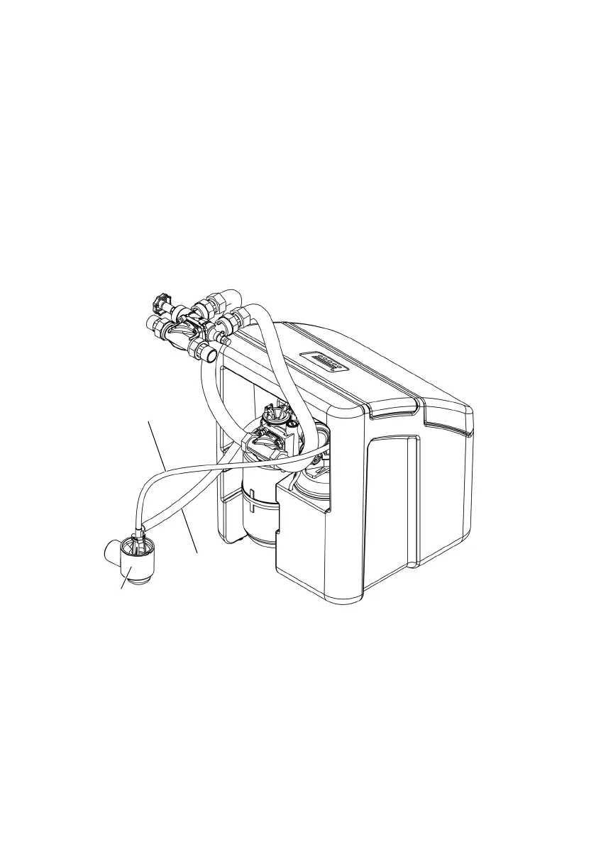 Die Schläuche für das Regenerationsabwasser und den Sicherheitsüberlauf müssen beide knickfrei zum