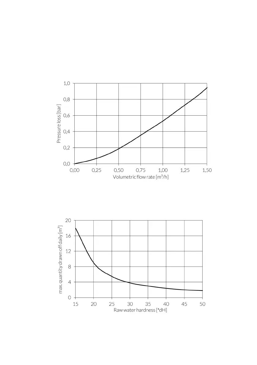 a mixed water hardness of 8 °dH depending on the volumetric flow rate