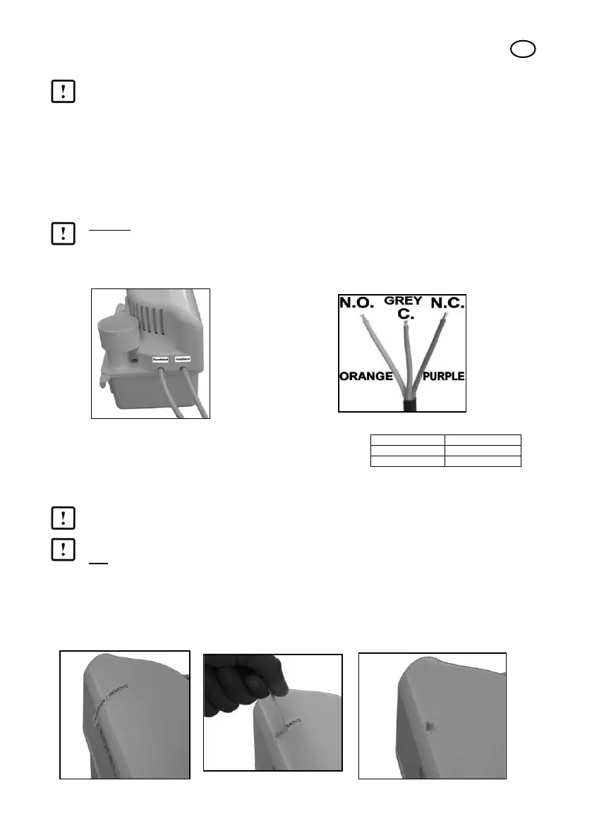 Utöver nätkabeln (POWER) är pumpen även utrustad med en signalkabel (ALARM), se bild 4.