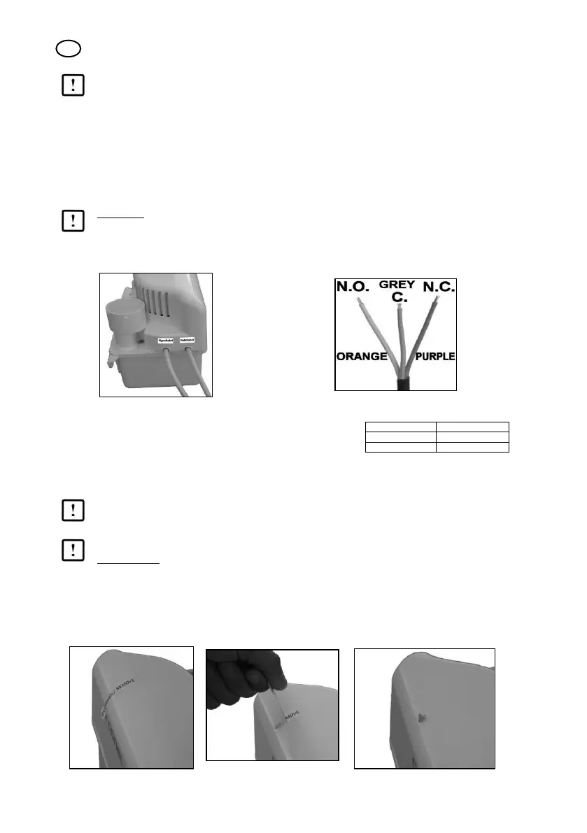 obrázku 5. Je nutné pripojiť tento kontakt, aby nedošlo k škodám spôsobeným vodou v prípade poškodenia čerpadla,