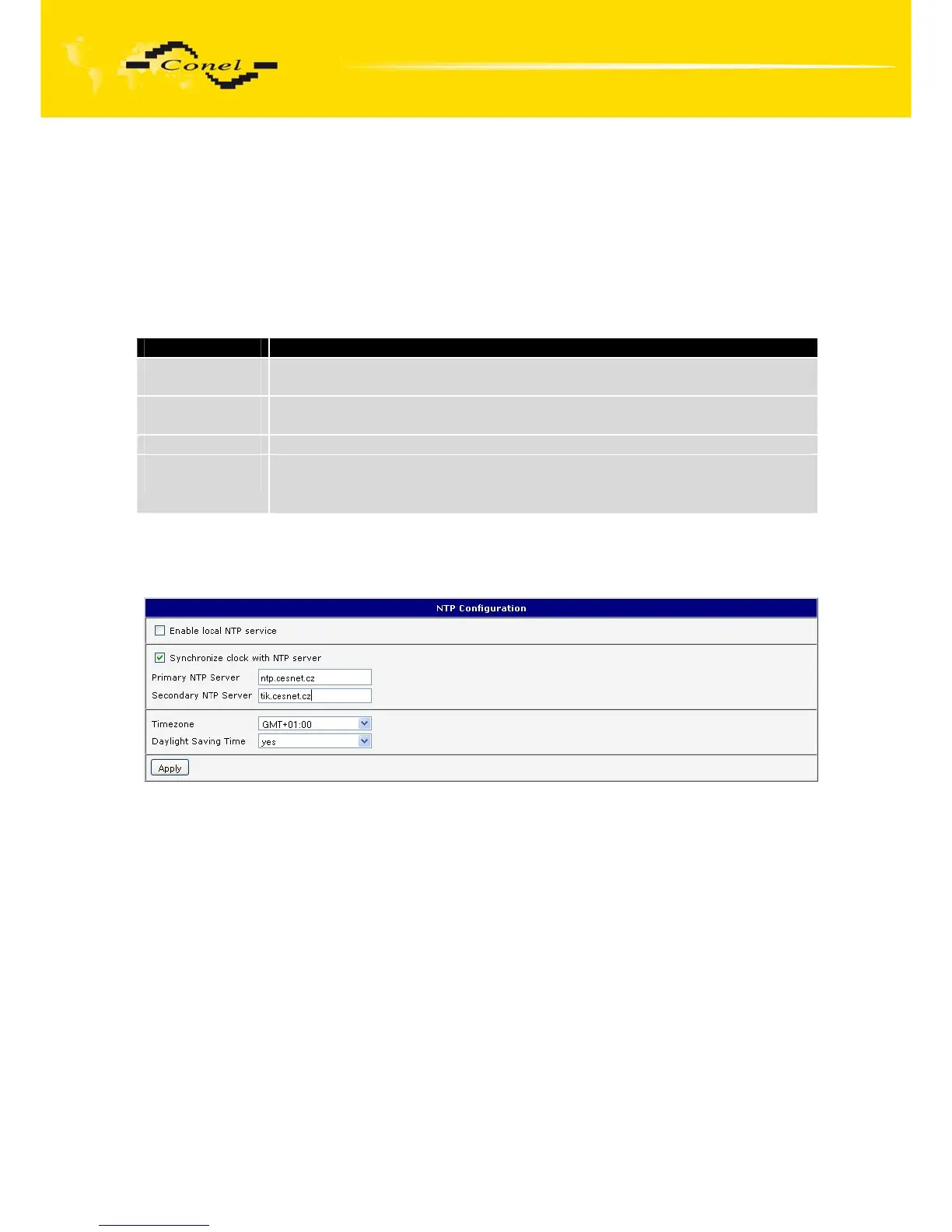 NTP client Configuration can be called up by option NTP item in the menu. NTP