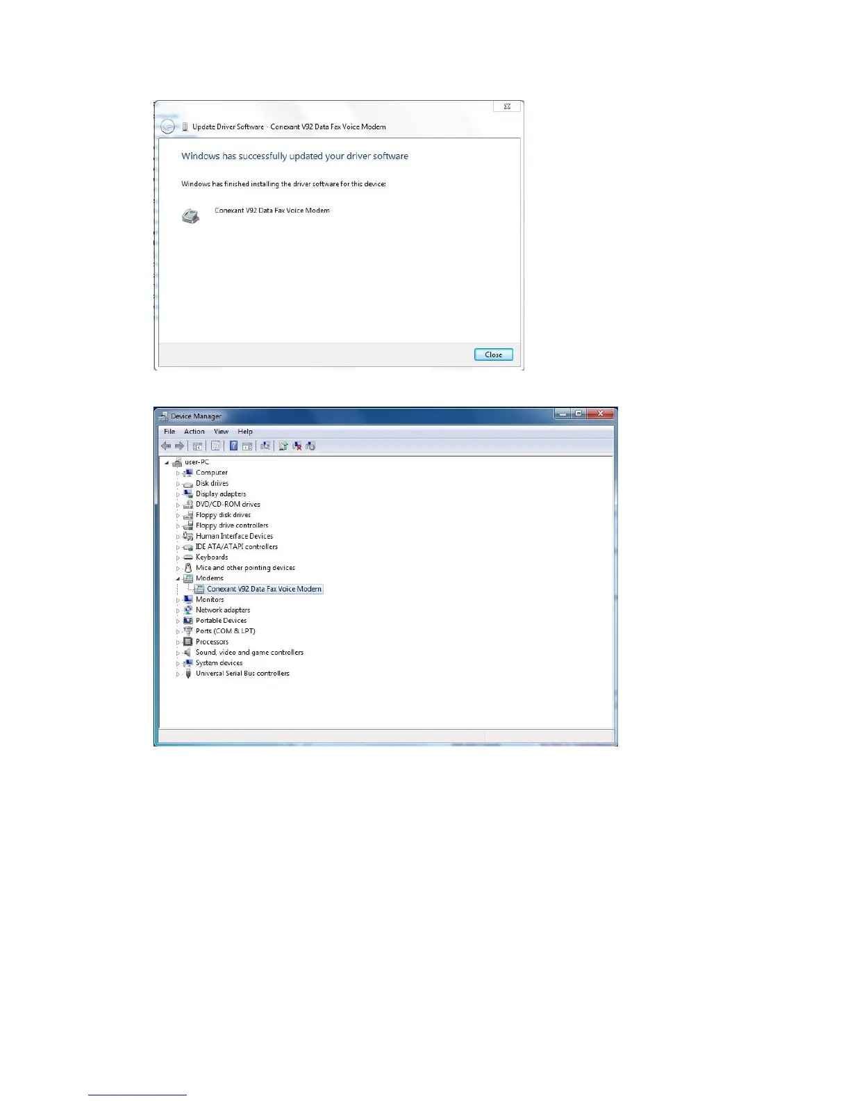 7. When completed installation, the modem displayed in Device Manager.