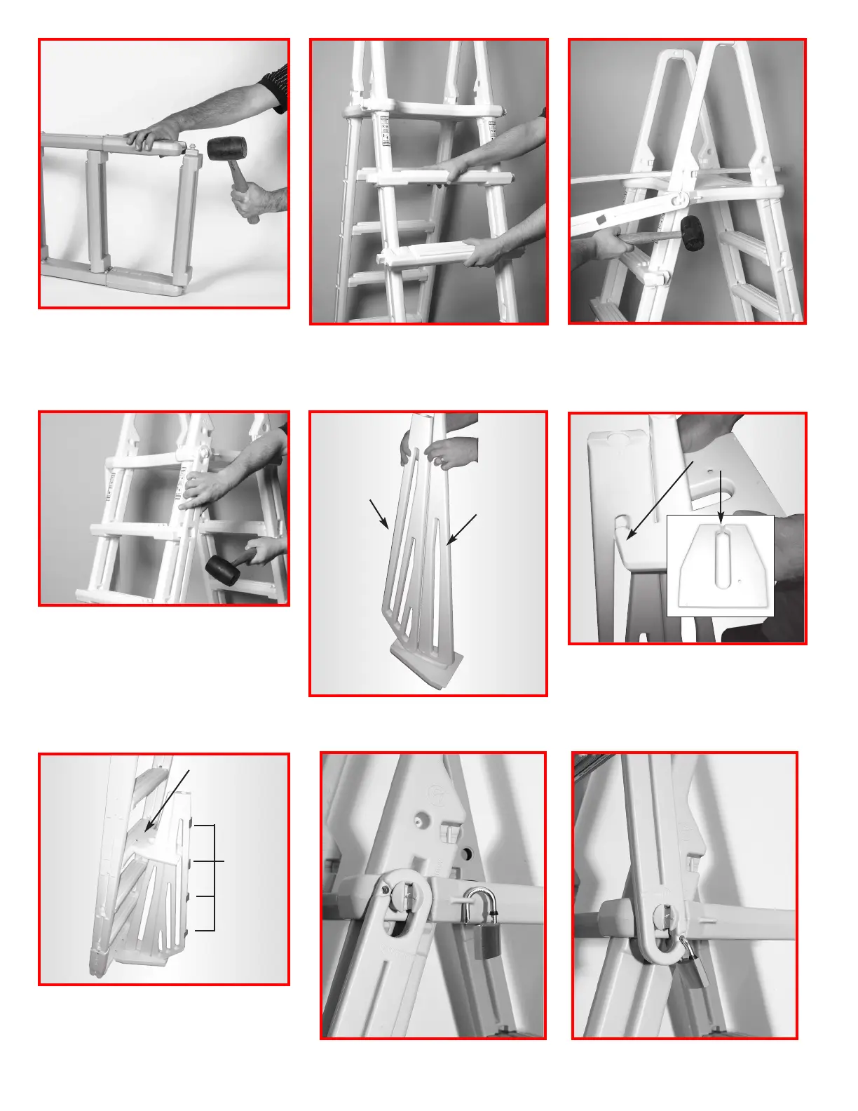 onto the treads. Flip ladder over and