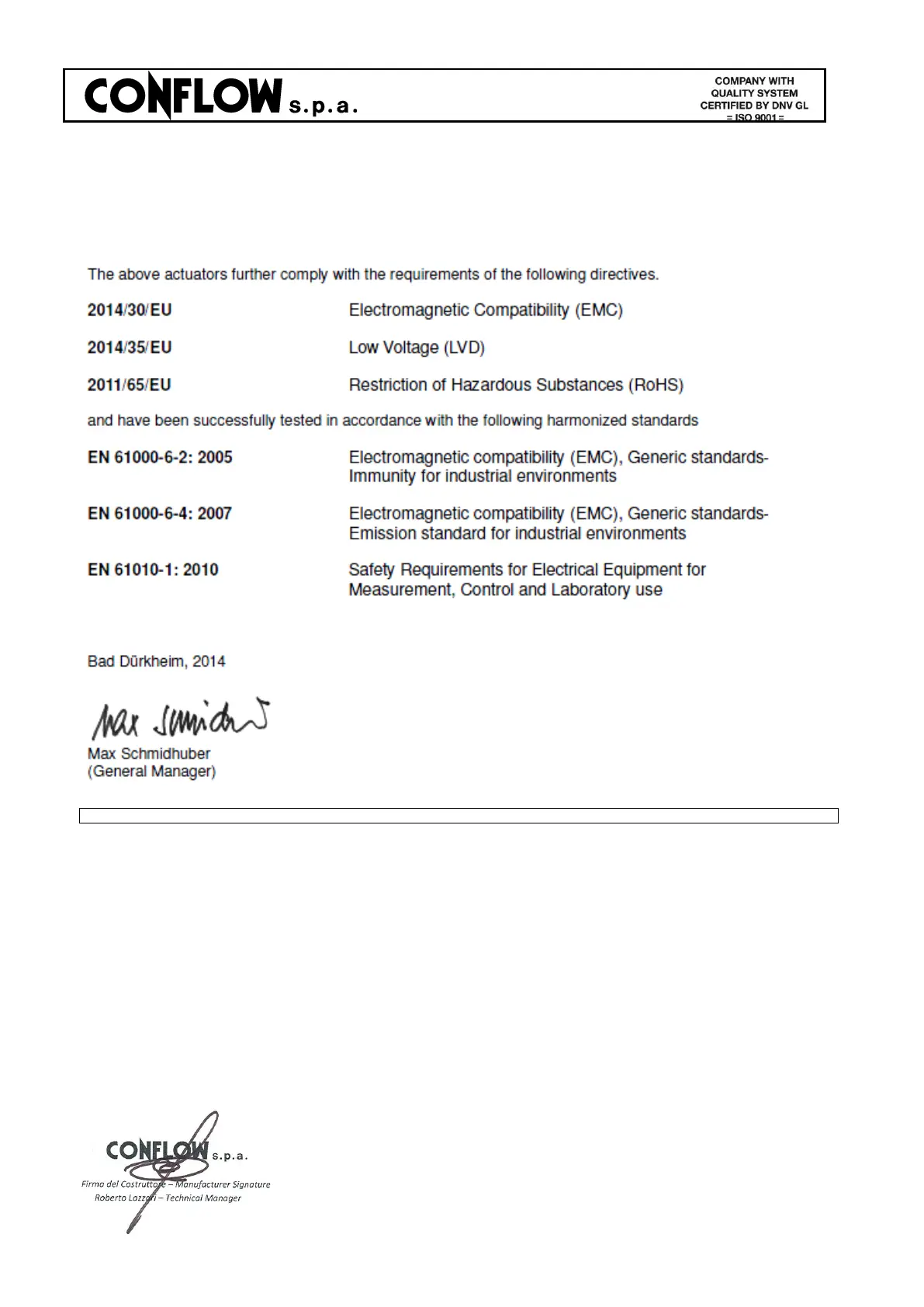 Electric Actuators on valve board are conformed to following Directives: