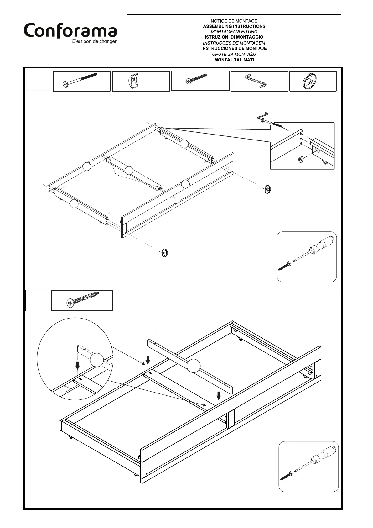 CONFORAMA MELODY - Assembly Step 12: Main Frame Assembly; Assembly Step 13: Drawer Base Installation