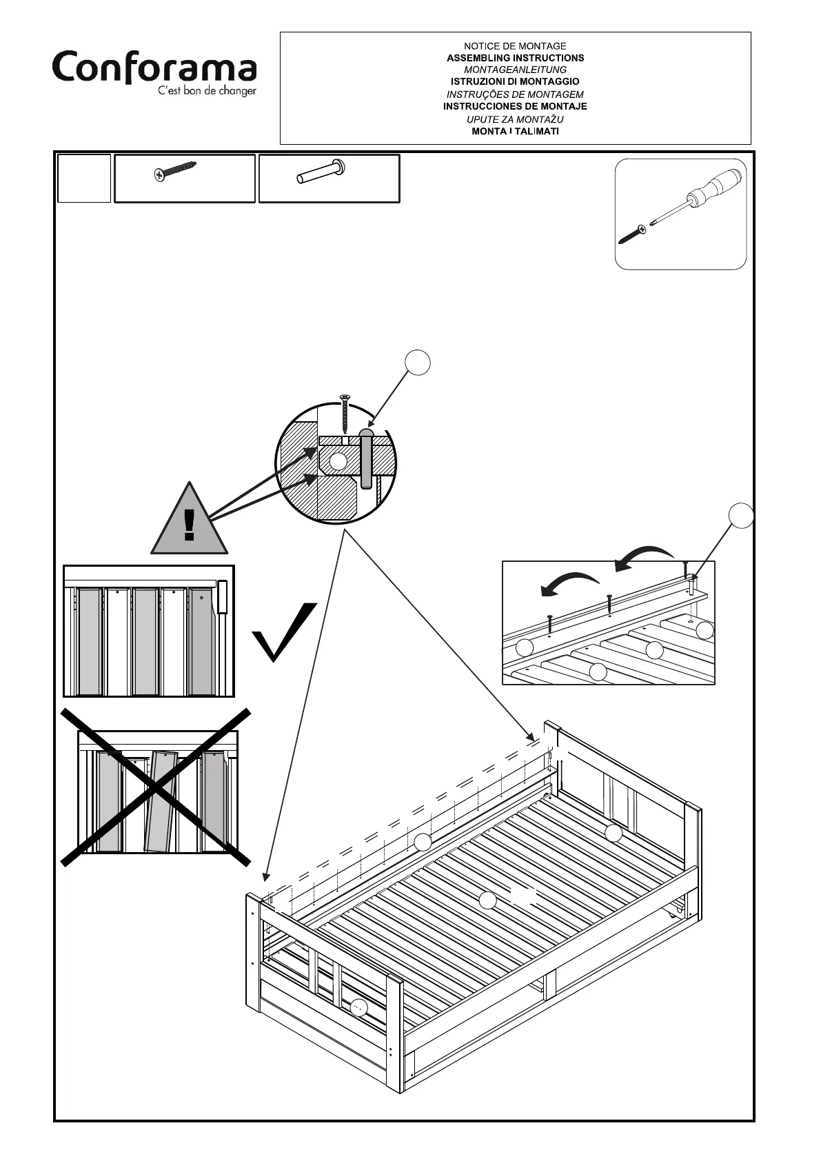 CONFORAMA MELODY - Assembly Step 15: Front Slat Securing