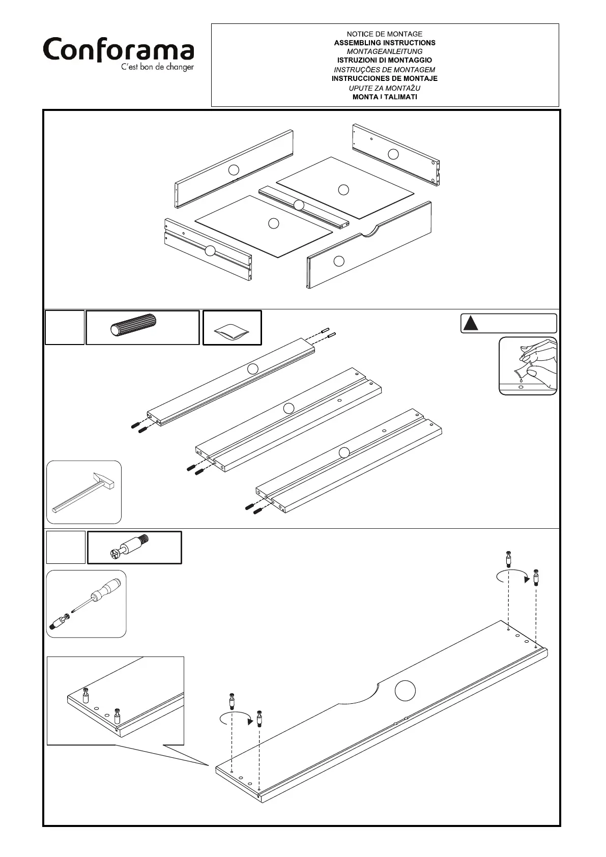 CONFORAMA MELODY - Assembly Step 16: Drawer Side Assembly; Assembly Step 17: Drawer Runner Attachment
