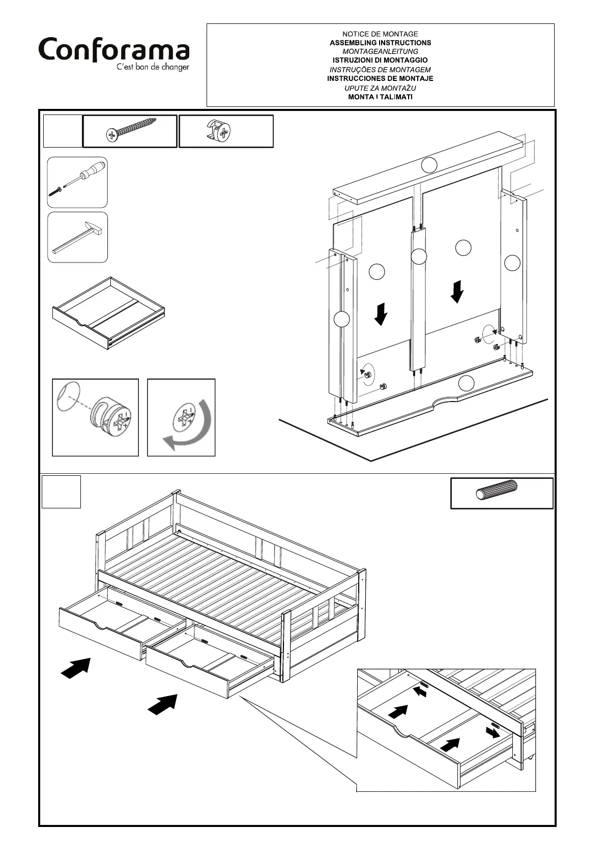 CONFORAMA MELODY - Assembly Step 18: Drawer Back Fixing; Assembly Step 19: Drawer Insertion