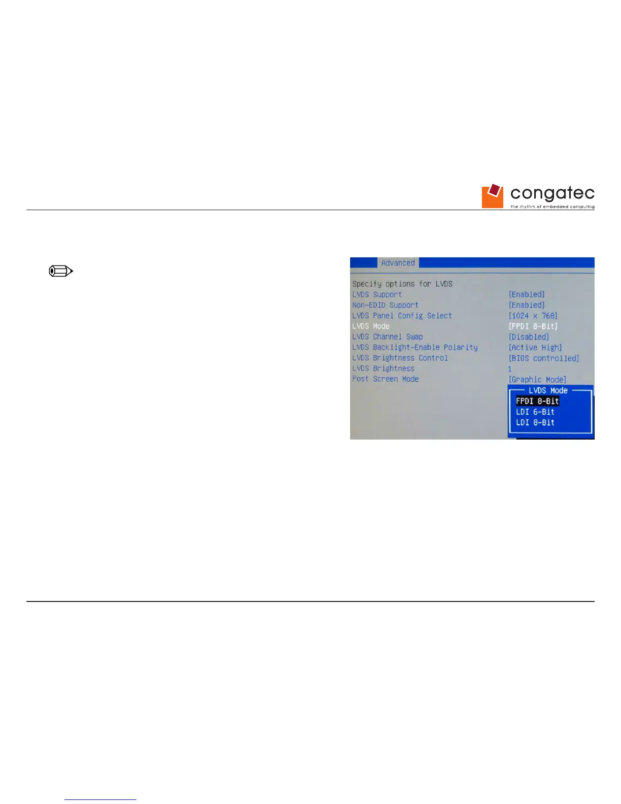 Congatec conga-IGX - LVDS Mode Configuration; LVDS Mode Setting Note