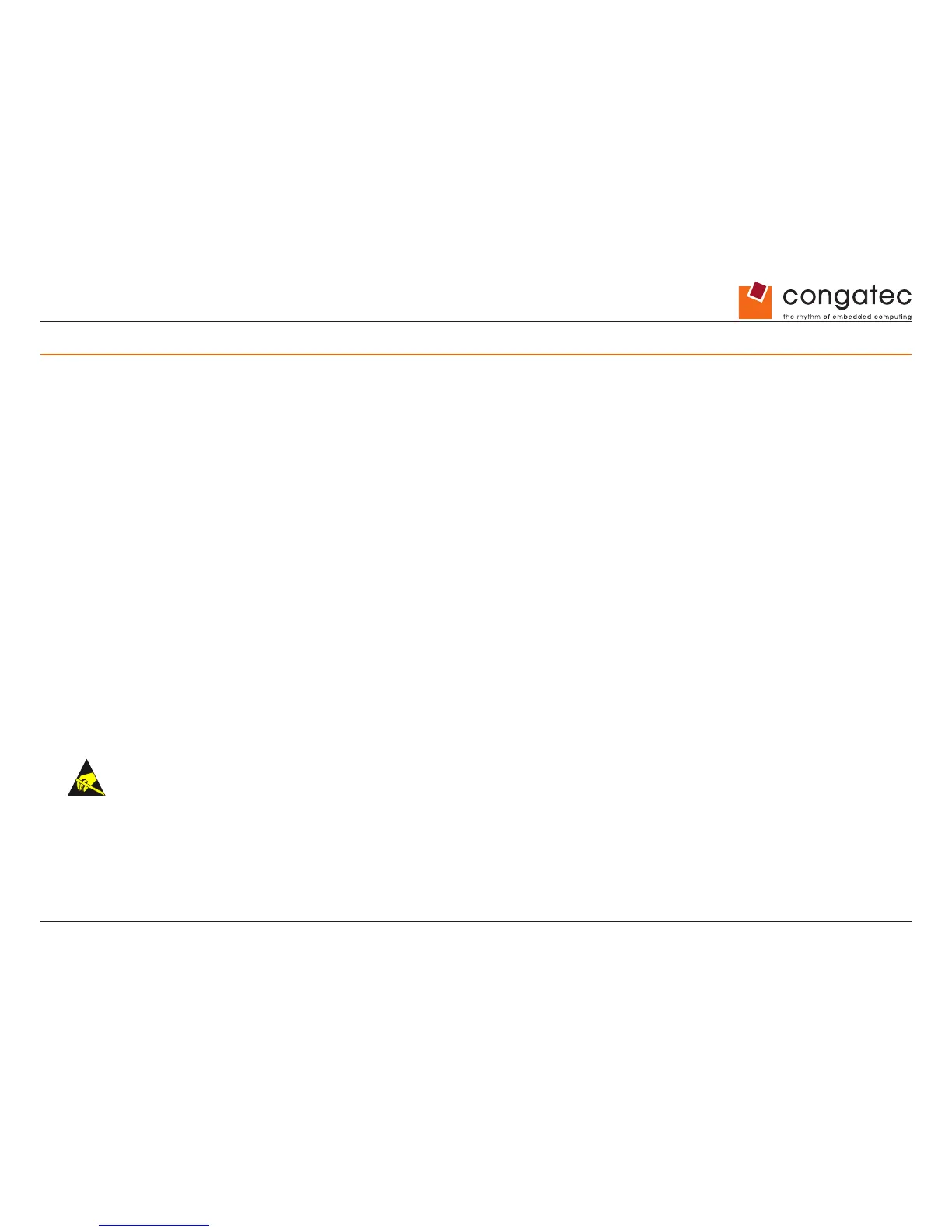 All congatec AG products are electrostatic sensitive devices and are packaged accordingly. Do not open or handle a congatec AG product