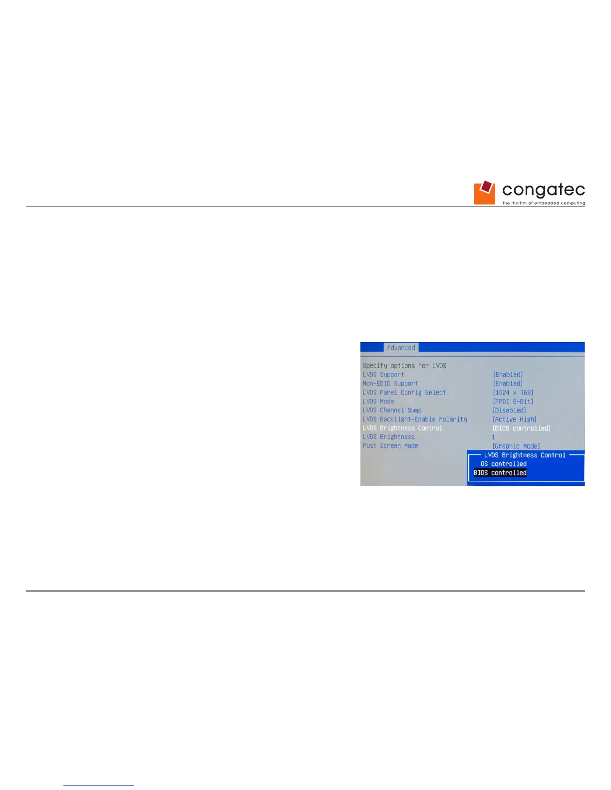 Congatec conga-IGX - LVDS Brightness Settings; LVDS Brightness Control; LVDS Brightness Level