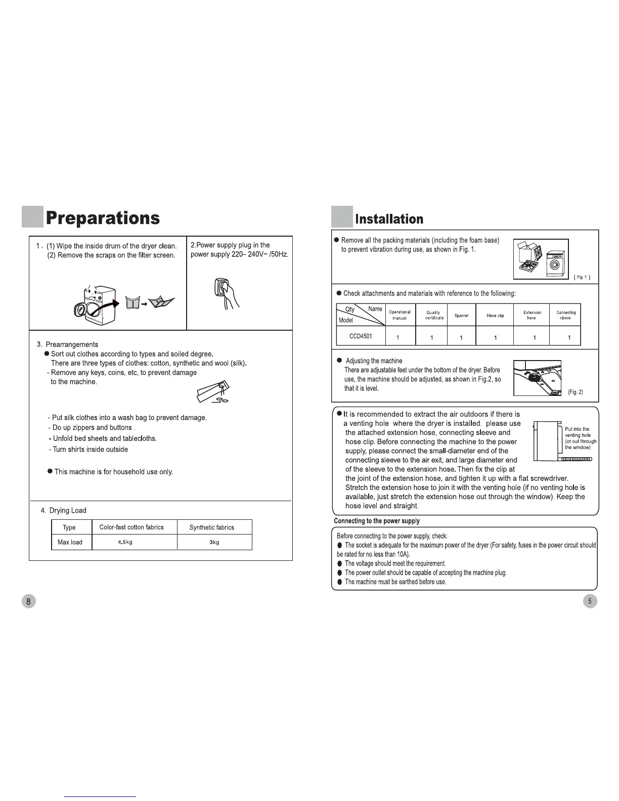 CONIA CCD4501 - Preparations; Installation; Adjusting the Machine; Connecting to the Power Supply