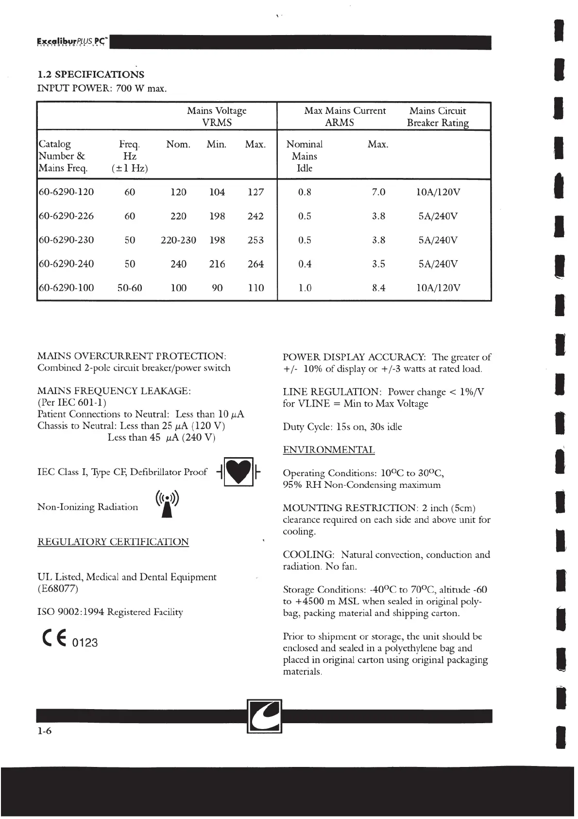 ConMed ExcaliburPLUS PC - Specifications; General Electrical and Regulatory Specs; Environmental and Mounting Requirements