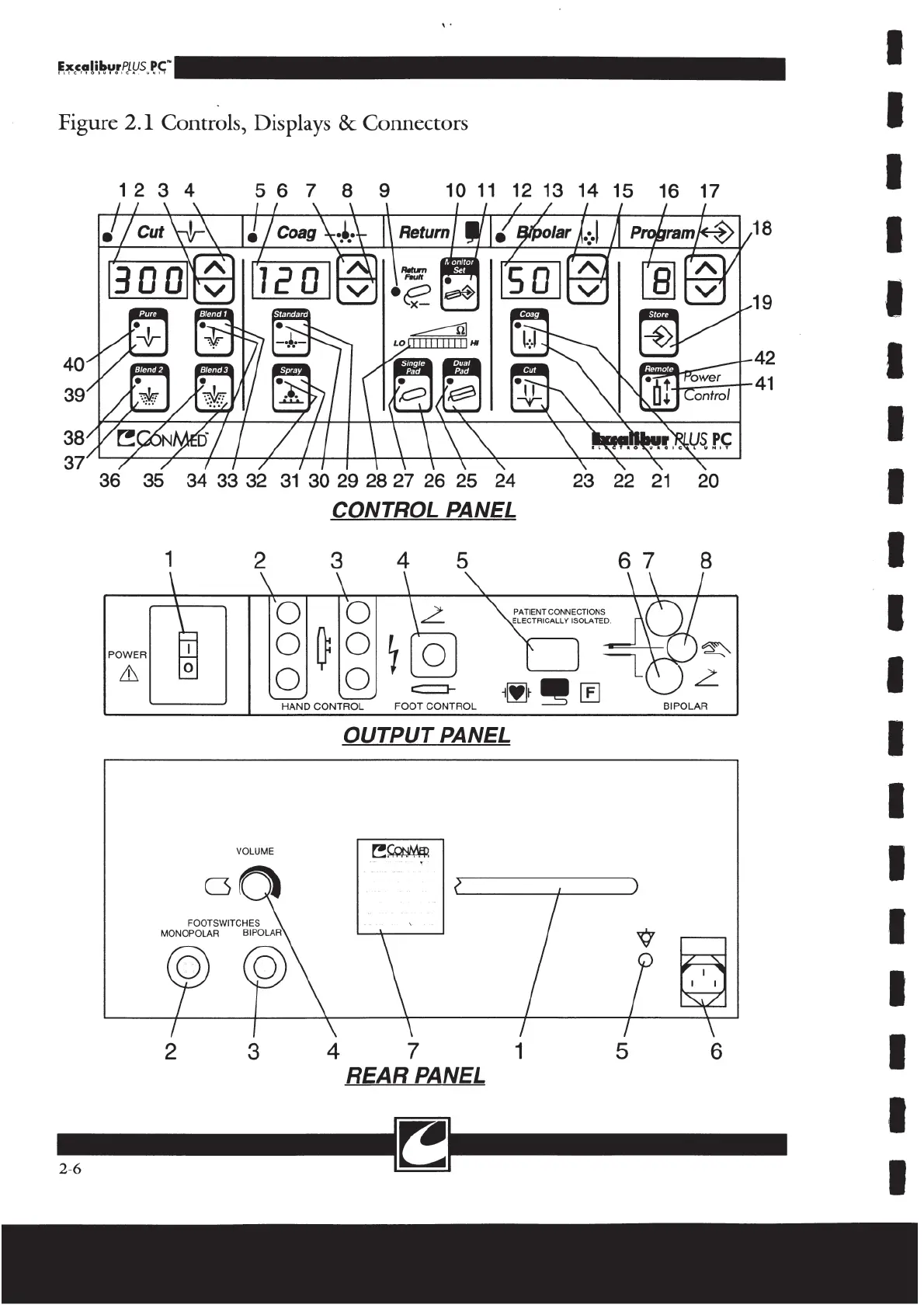 ConMed ExcaliburPLUS PC - Control Panel; Output Panel; Rear Panel