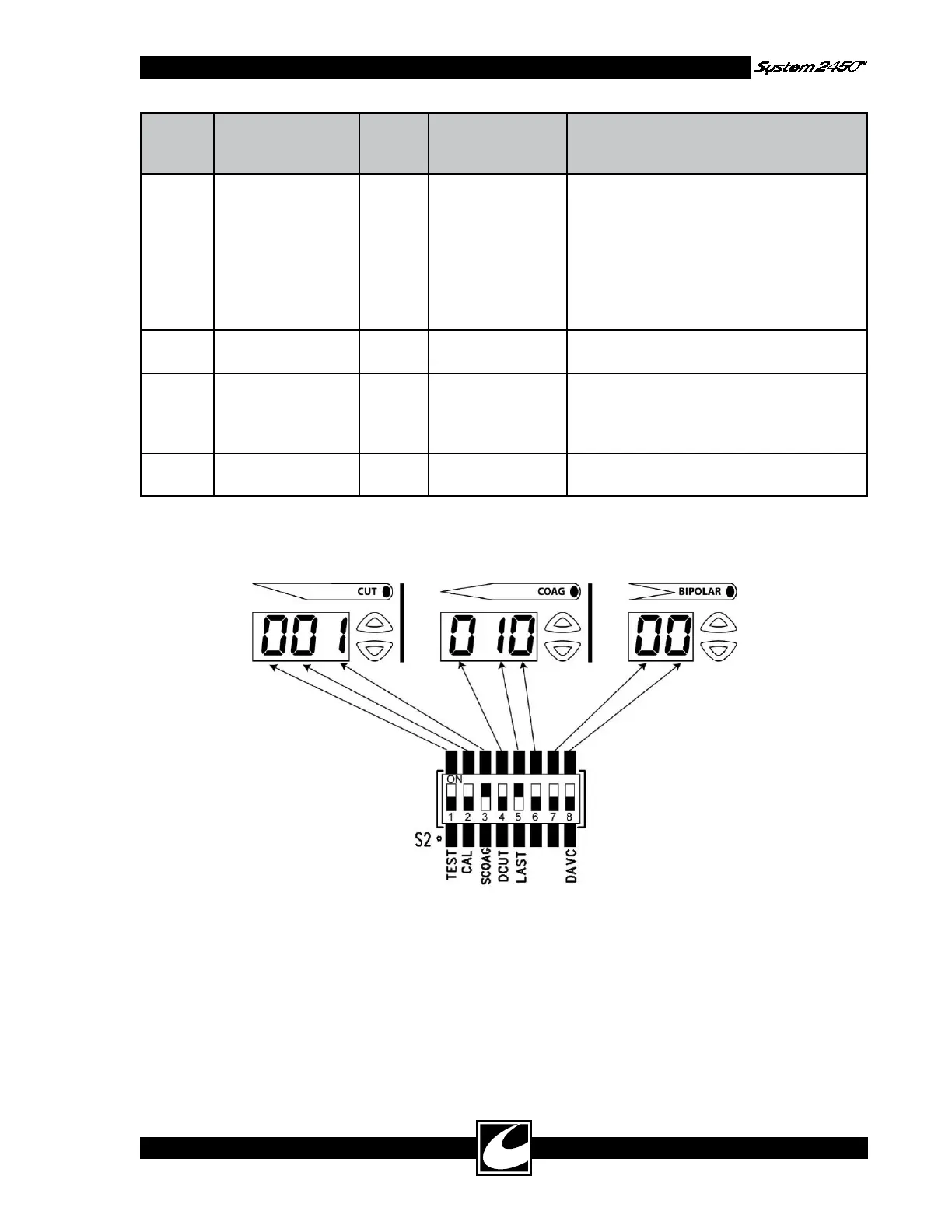 ConMed System 2450 - Figure 4.2 DIP Switch Positions
