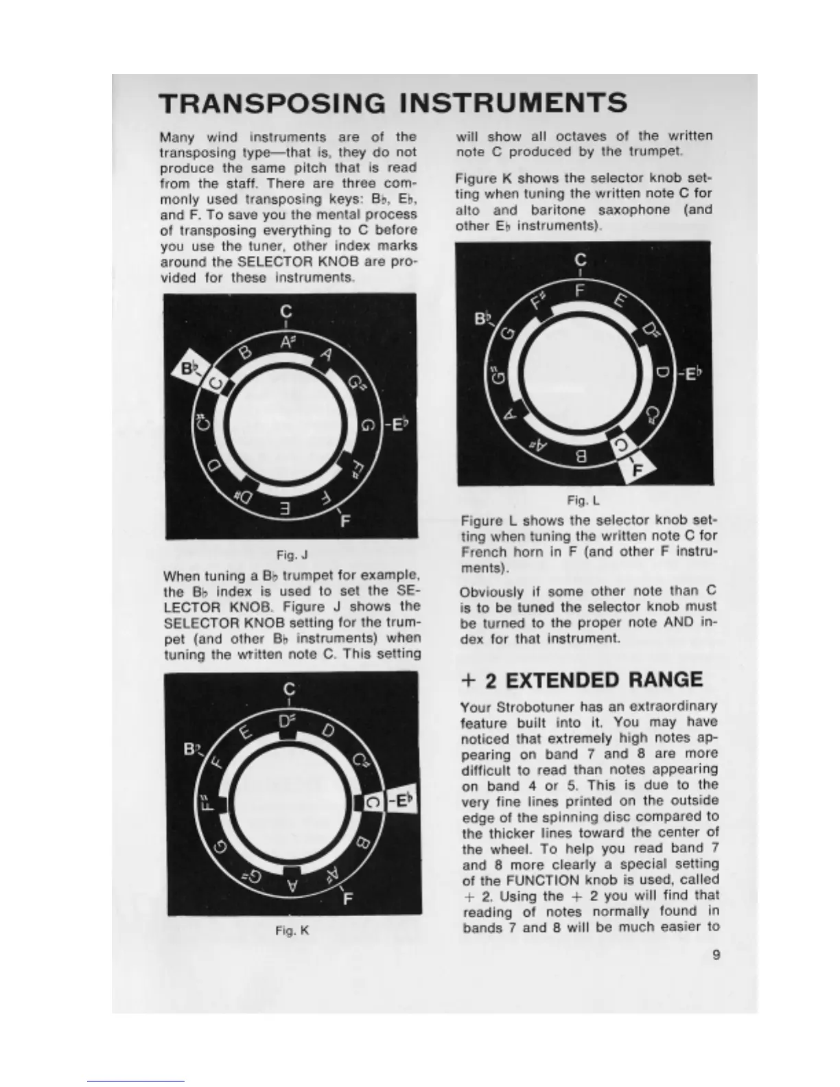 Conn StroboTUNER ST-11 - TRANSPOSING INSTRUMENTS; Tuning Transposing Instruments; + 2 EXTENDED RANGE; Utilizing Extended Range Feature