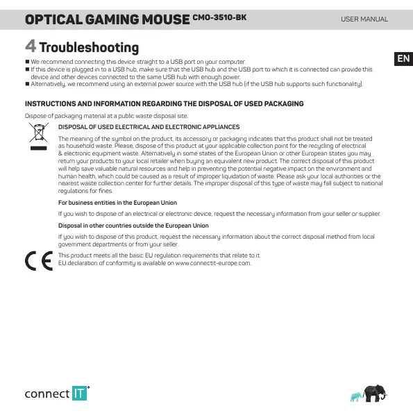 If you wish to dispose of an electrical or electronic device, request the necessary information from your seller or supplier.