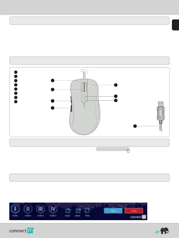 Plug the gaming mouse into the computer and install the software that is available at www.connectit-europe.com .