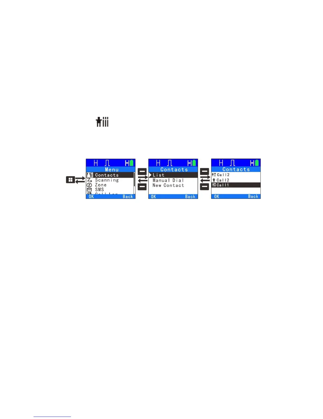 ●Edit Contact: Modify the ID number or alias of a private call contact. Press”*” key to
