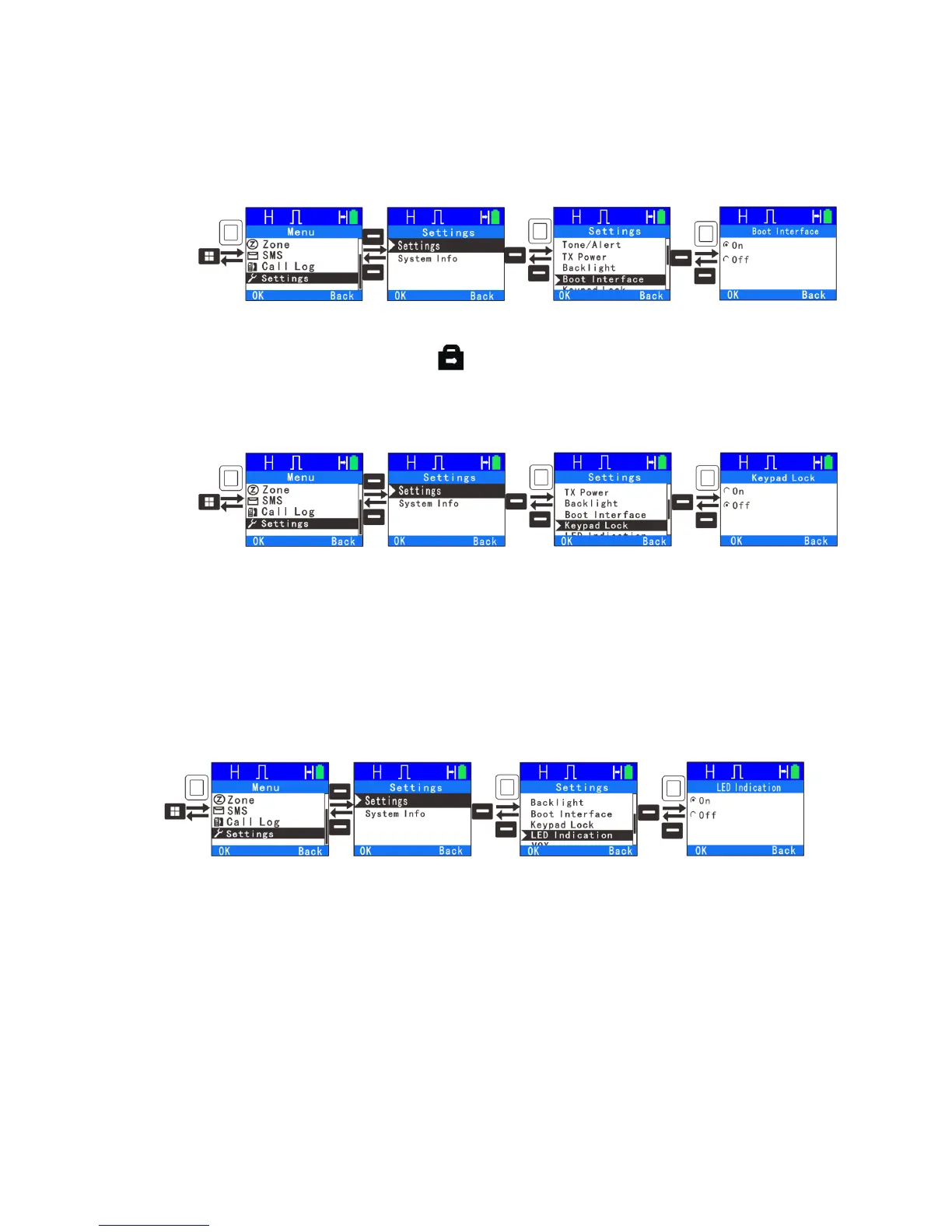 ●Keypad Lock: Allow a user to enable or disable the keypad lock via the menu.