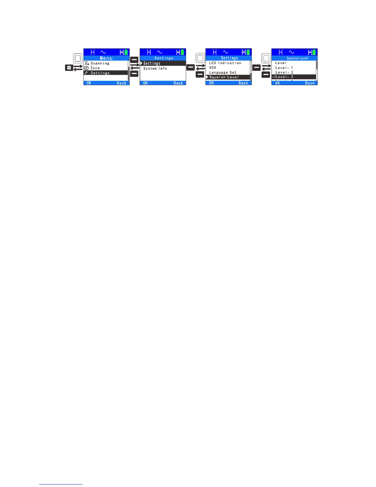 ●Squelch Level: In the analog mode, this feature allows you to adjust the