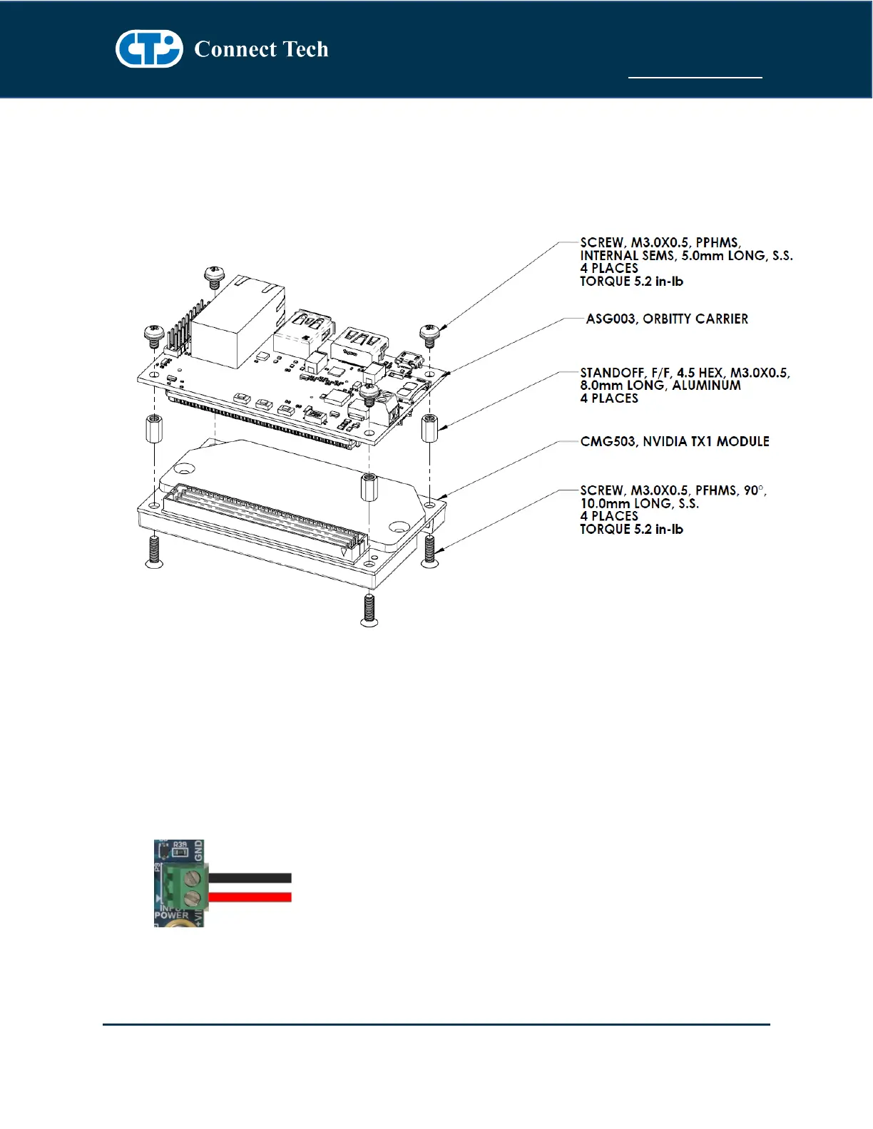 2. Install the Jetson TX2/TX2i Module onto the Orbitty Carrier as shown below: