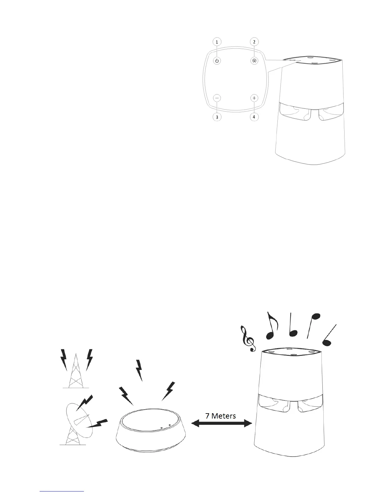 4. Volume can be increased from the speaker by pressing “ + ” button or decreased by pressing the button