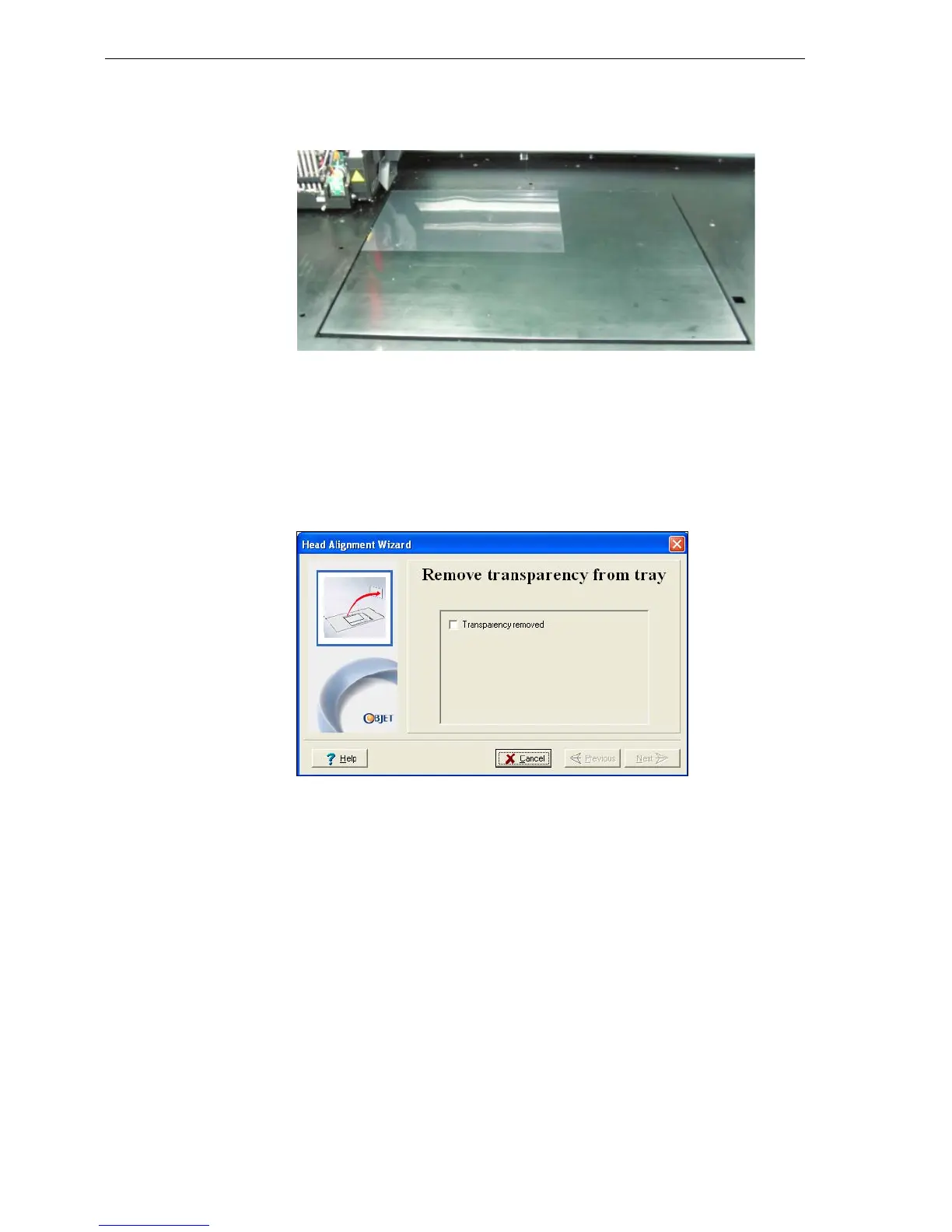 5. Wheninstructedtodoso,placethetransparencyonthebuildtray—